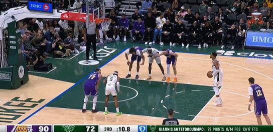 五大囧了! 字母哥罚球离谱不沾筐,裁判吹罚违例! 对阵湖人的第三节,字母哥从头冲杀到结尾,体能消耗巨大,几乎每一个回合都要到篮下和艾顿硬怼,获得罚球后,会是他难得的休息时间。 这个罚球之前,字母已经在罚球线上站半天了,做了两次抬手看框都没有出手,至少耗了15秒,结果一出手,没碰着框....