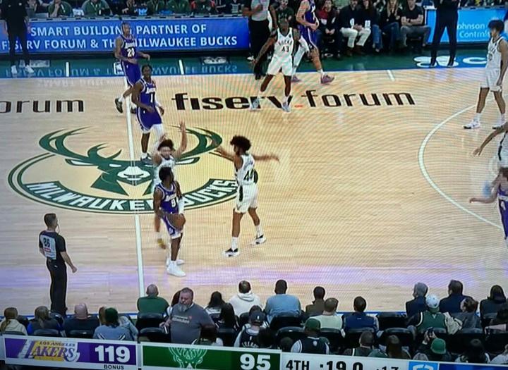 离谱!布朗尼在垃圾时间,被雄鹿队包夹了... 虽然带着詹姆斯的姓,但布朗尼这场比赛进攻端颗粒无收,有大空位也不太敢出手,在进攻端完全可以当他不存在,完全没必要送上双人包夹,并且是垃圾时间的双人包夹。 另一方面来说,雄鹿这帮板凳席末尾的球员,也算是让布朗尼享受了一把球星待遇。众所周知,没有被双人包夹过的球员,还称不得球星...