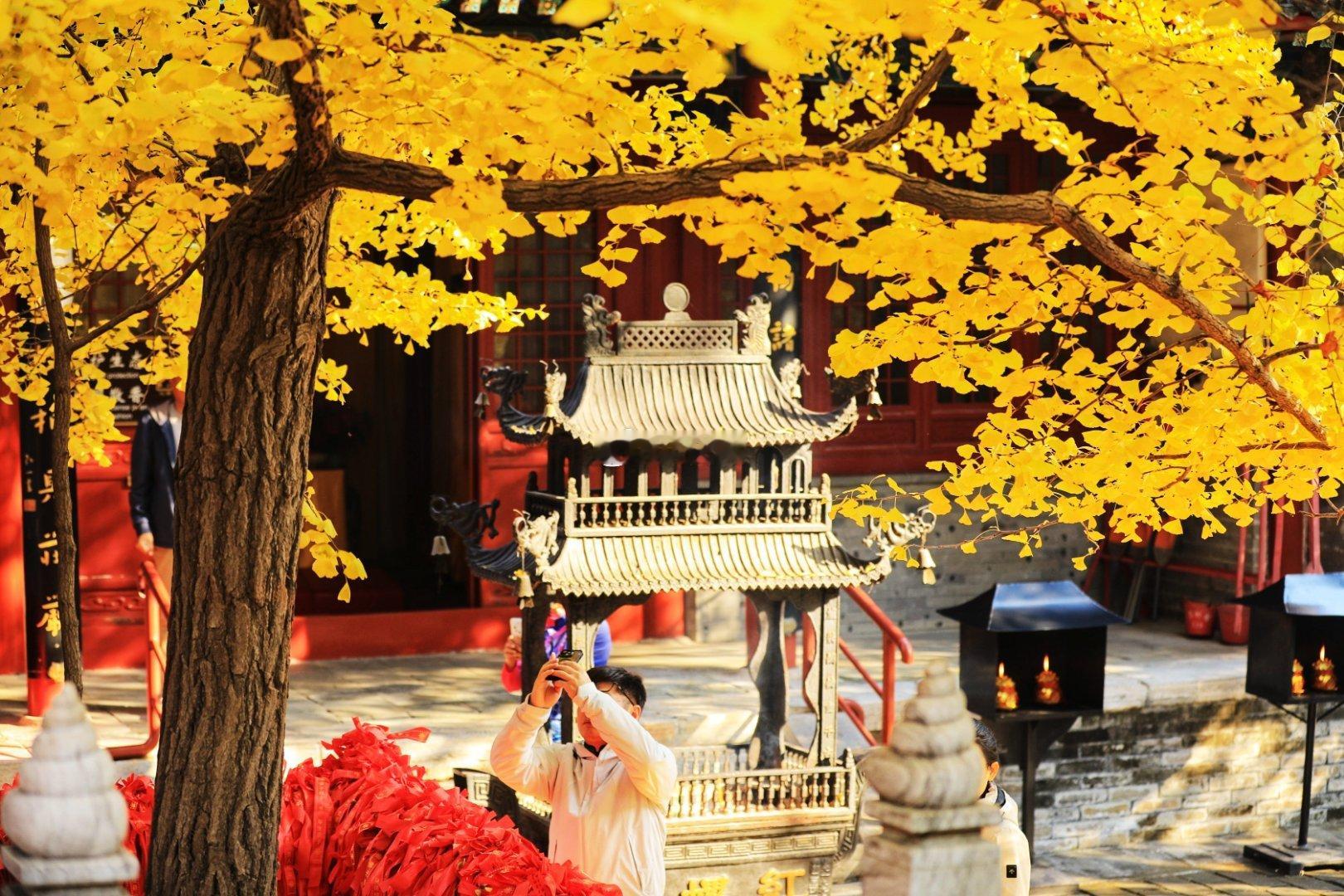 【北京中山公园】宫墙映日锁秋光,银杏凝金覆角廊。风过落英逐晓色,满园诗意满庭芳摄