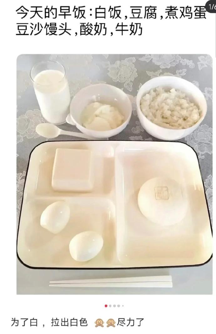 今天的早饭:白饭,豆腐,煮鸡蛋豆沙,馒头,酸奶,牛奶