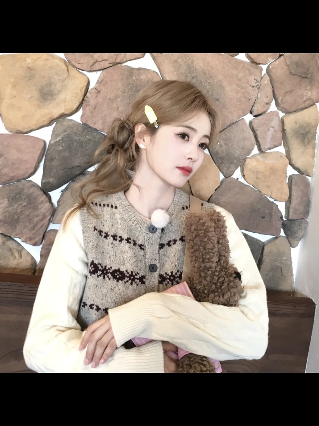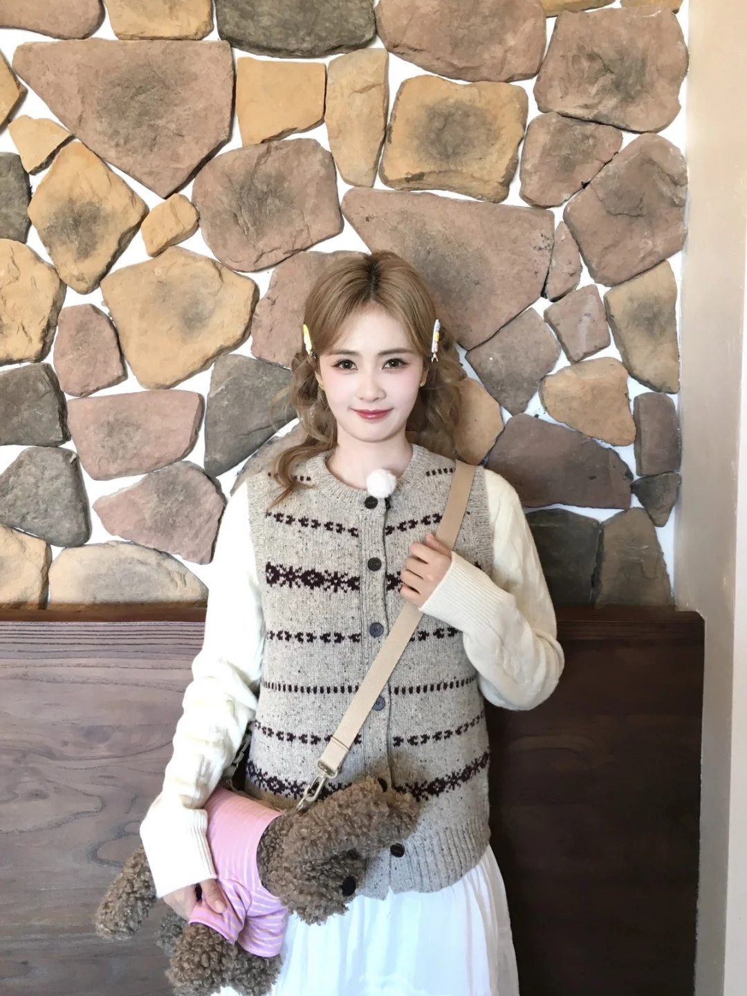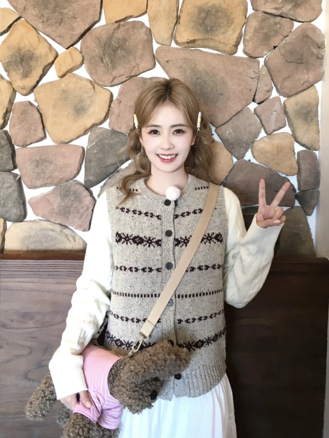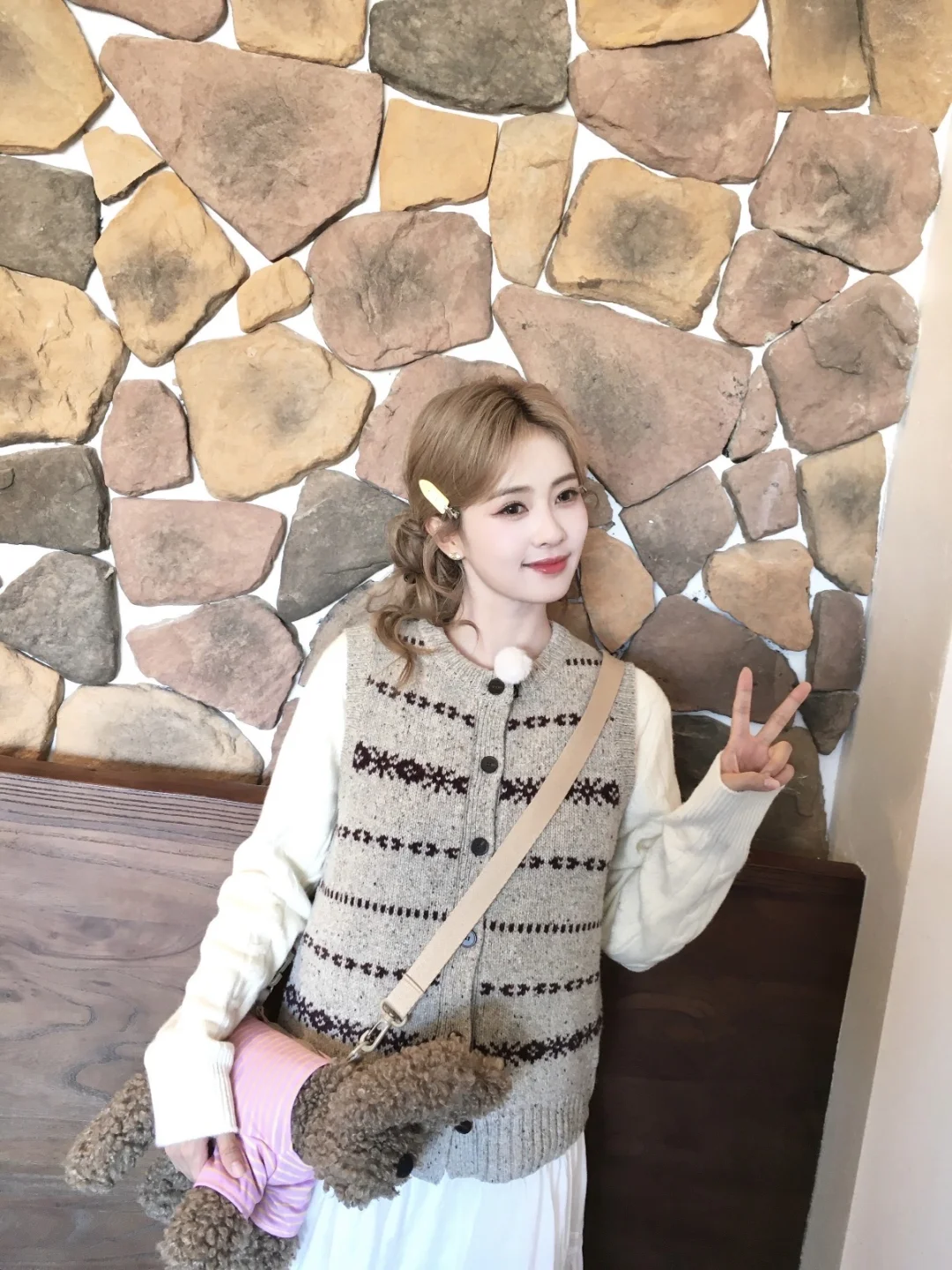 🍂白鹿这波秋日甜妹穿搭我直接抄作业!软fufu好戳 白鹿这身秋日叠穿直接把“焦糖奶油小蛋糕”穿身上了💘 复古提花针织马甲+奶白内搭+温柔长裙,暖乎乎的色调裹满秋日氛围感~ 发夹+怀里的修勾🐶包包直接把甜妹感拉满,连比耶都透着娇俏灵气! 这穿搭适配所有秋日咖啡店/逛街场景,温柔又不费力✨