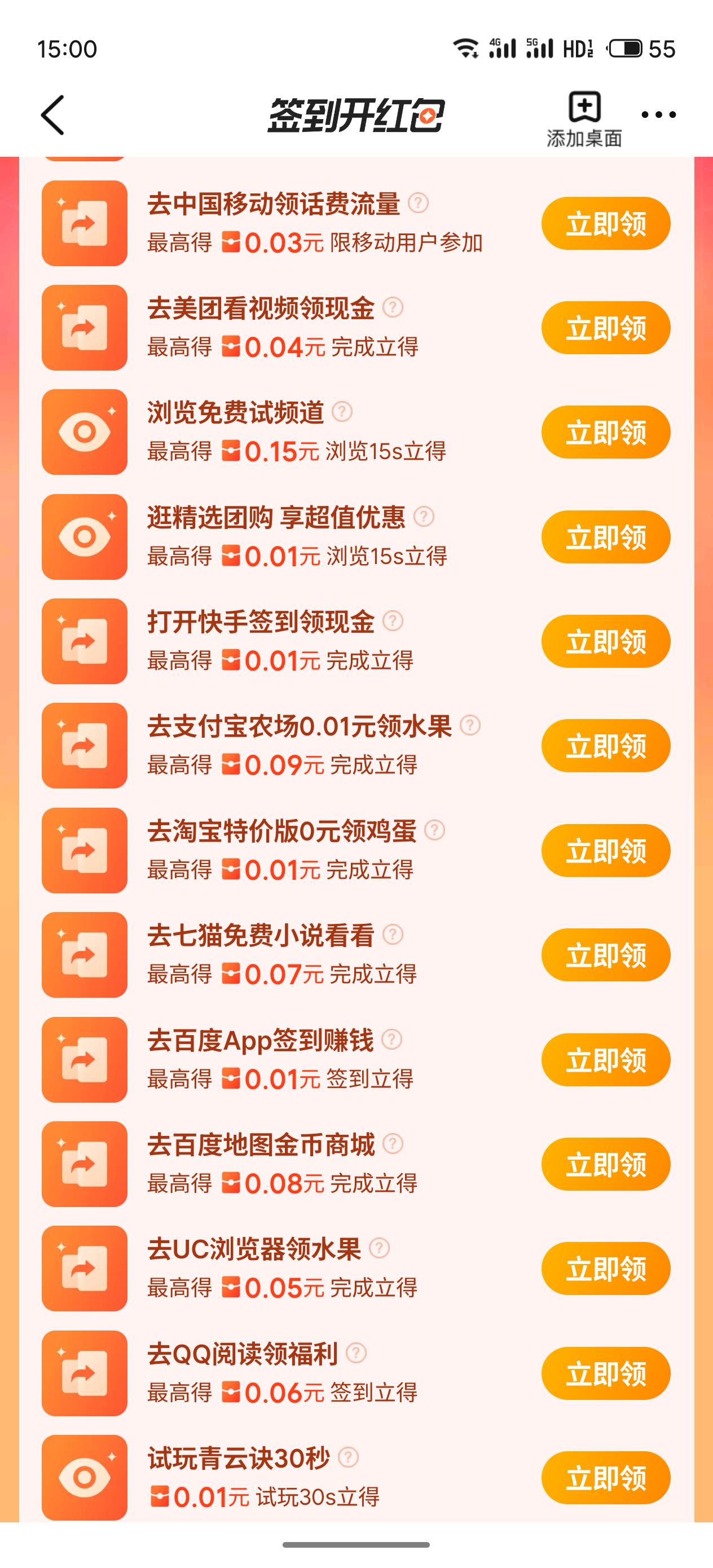 这个界面很神奇 天天领现金 很难找到入口 到今天也没有把握一下子找得到 只能判定