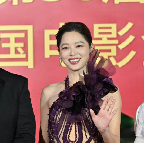 辛芷蕾身着紫色花朵高定礼服现身第38届金鸡奖红毯,明媚笑容宛如春日暖阳,瞬间点亮整个现场,美到让人移不开眼
