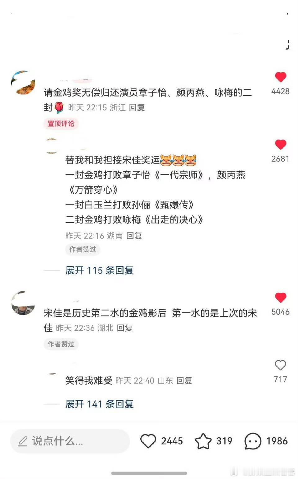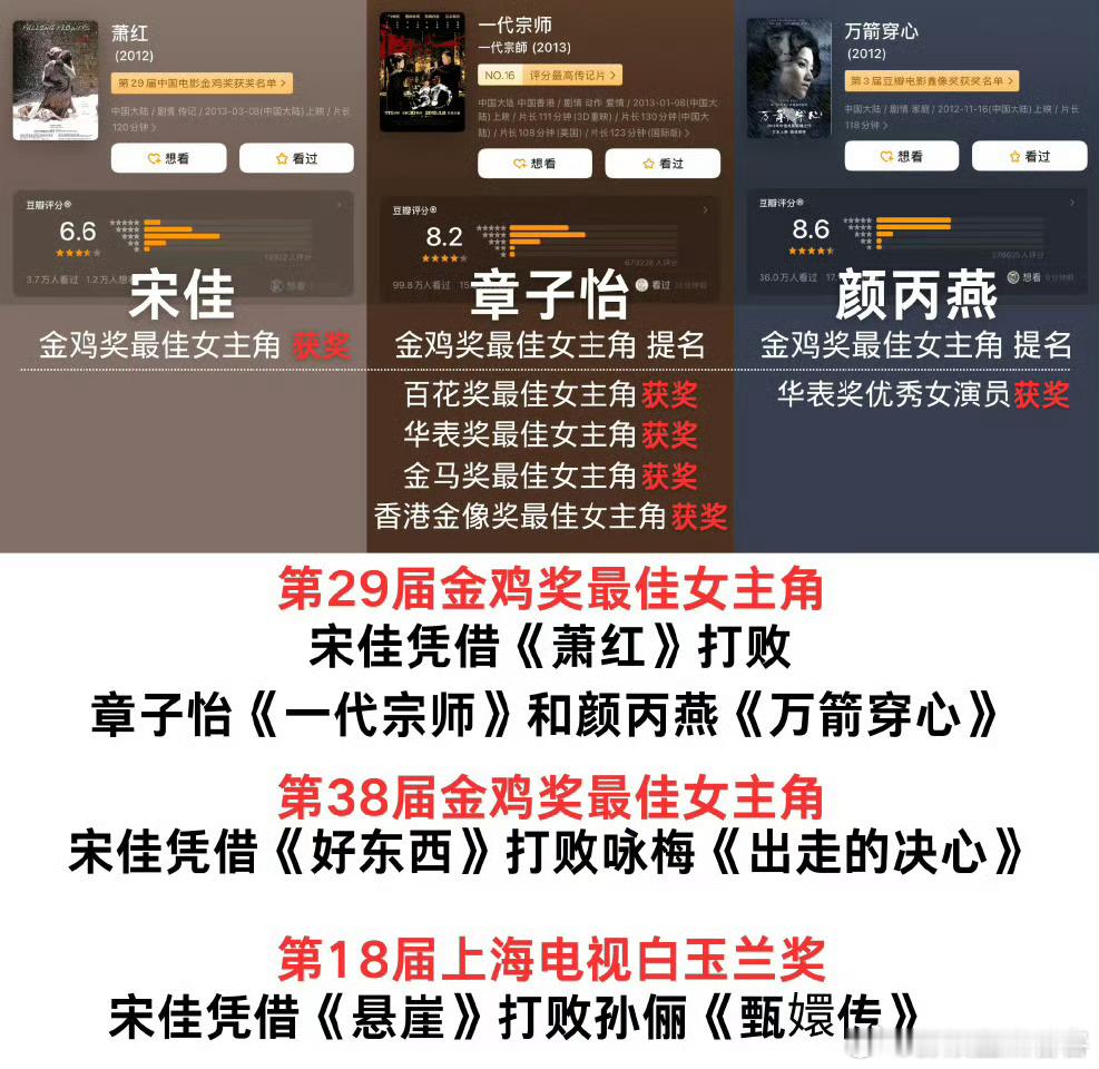 网友盘点宋佳的争议宋佳【“演员是高危职业”的发言 】图一图二【给有怀孕老婆的导演当三】图五【奖运】一封金鸡打败章子怡《一代宗师》,颜丙燕《万箭穿心》 一封白玉兰打败孙俪《甄嬛传》二封打败刘亦菲《玫瑰的故事》 二封金鸡打败咏梅《出走的决心》 真是离谱啊