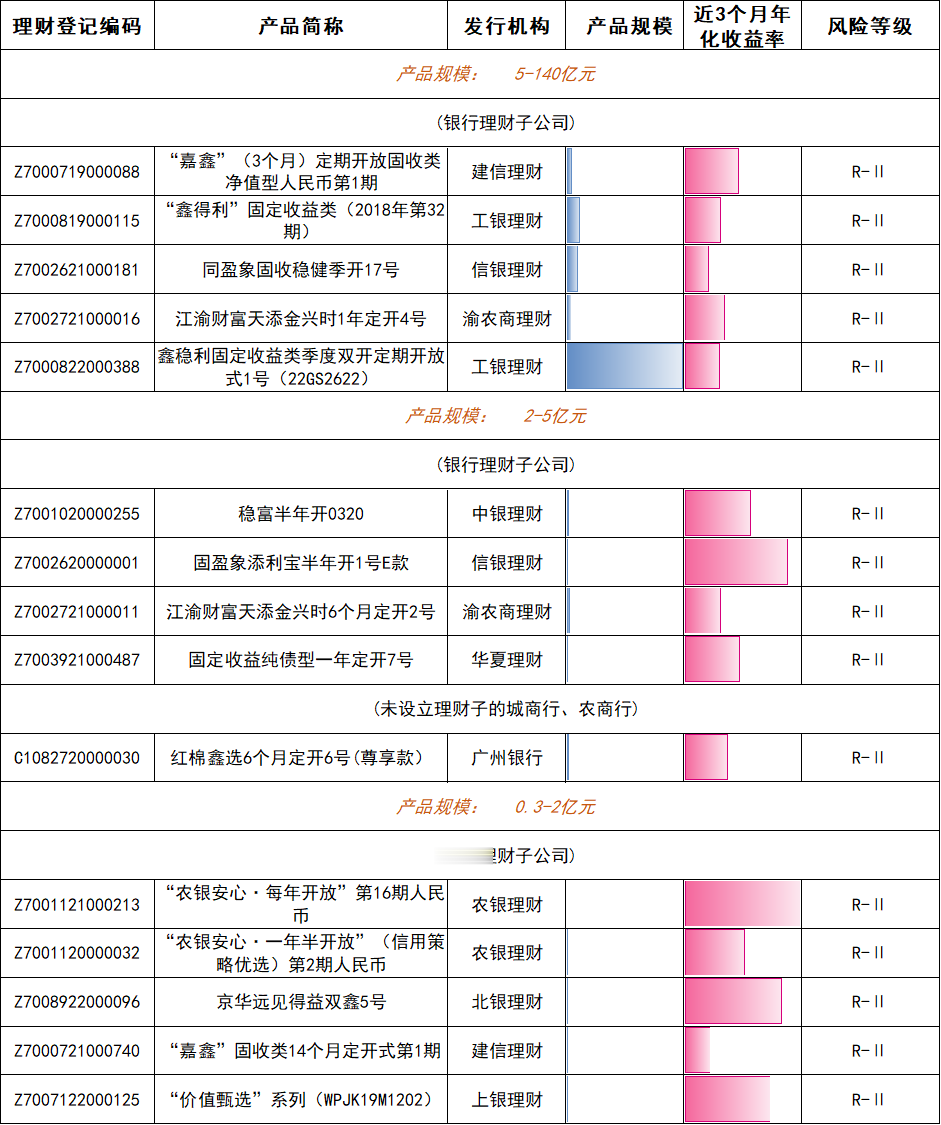 (注:榜单中彩色条形长度代表数值大小,同组数值越大,条形长度越长。R-Ⅰ、R-Ⅱ、R-Ⅲ、R-Ⅳ、R-Ⅴ分别代表产品风险等级一级(低)、二级(中低)、三级(中)、四级(中高)、五级(高)。)