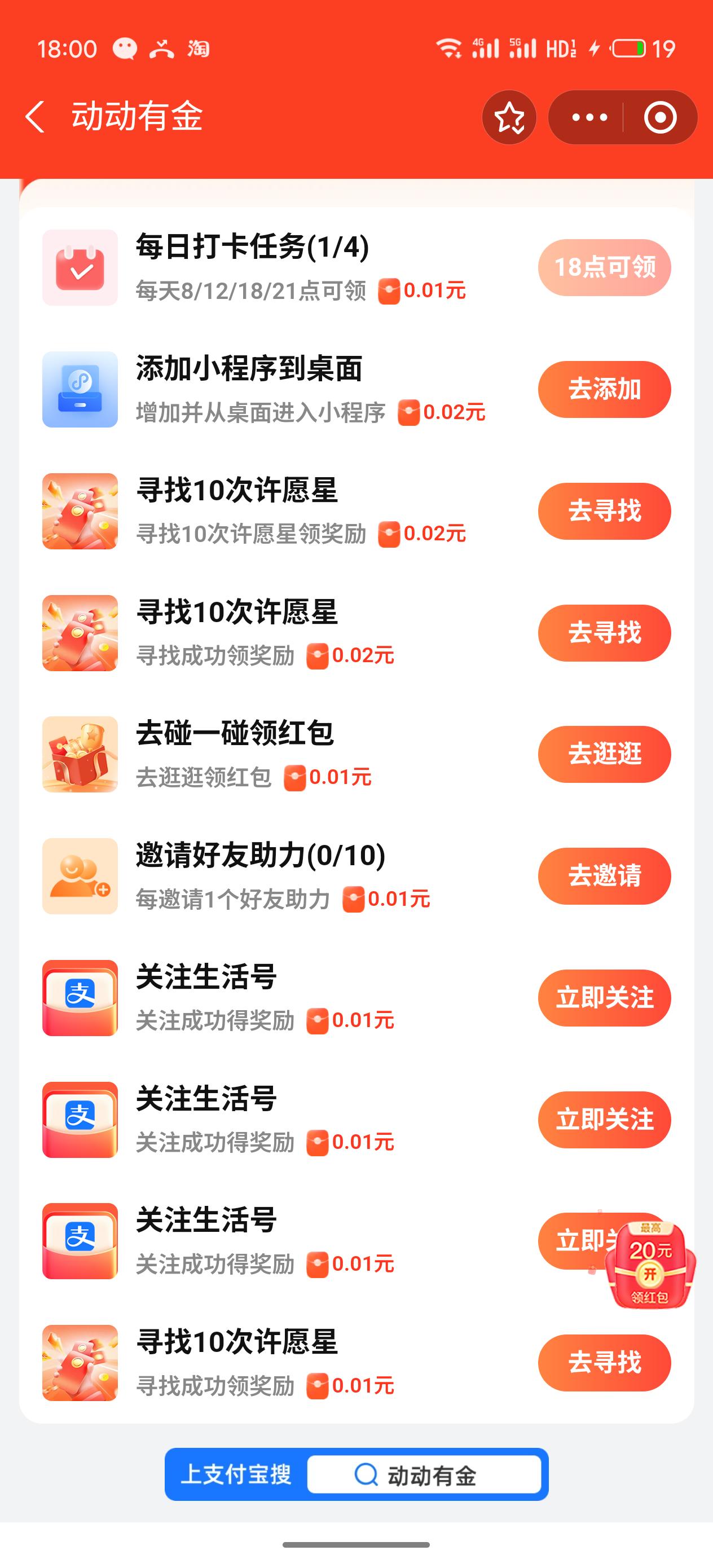 今天偶然刷到了 支付宝里的小程序 运动有金 超简单,点点就把任务做了 提现没有任何阻碍 支付宝 免费薅羊毛
