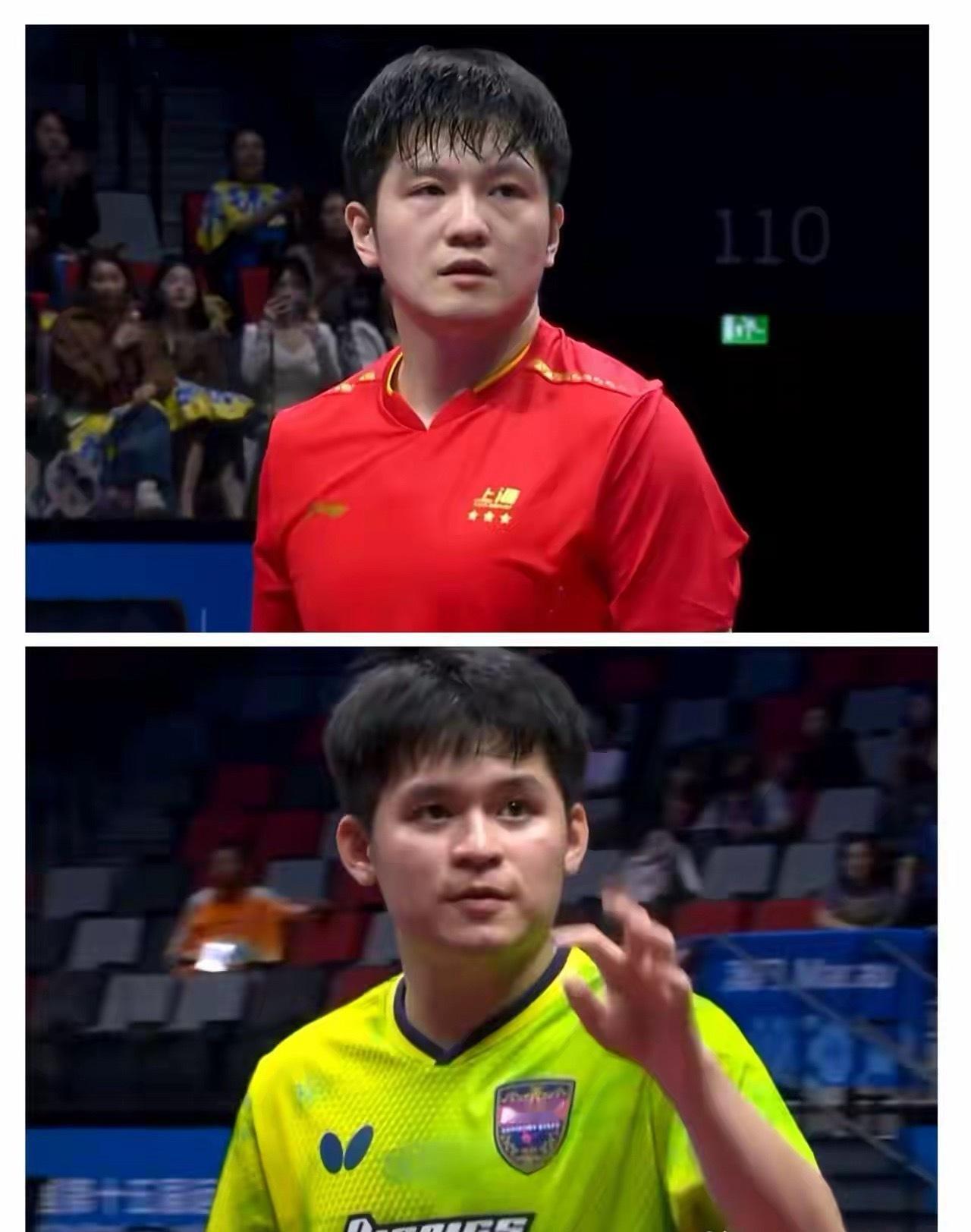 男单决赛现场,出现了红花配绿叶。林诗栋绿色队服上场,摆明是给偶像当绿叶。樊振东红色队服上场,红运满满志在必得。小石头采访说,决赛就是向东哥学习,今天小石头没有任何压力,就是放开去打。小石头和东哥今年乒超交手两次都输了,小石头也很开心,能和偶像交手就是学习。果然开局小石头比分领先,樊振东也在试探吧,最后11-9小胖逆转拿下第一局。今天的男单决赛一定会很精彩,谁夺冠都祝贺。图片来自网络侵权可删。