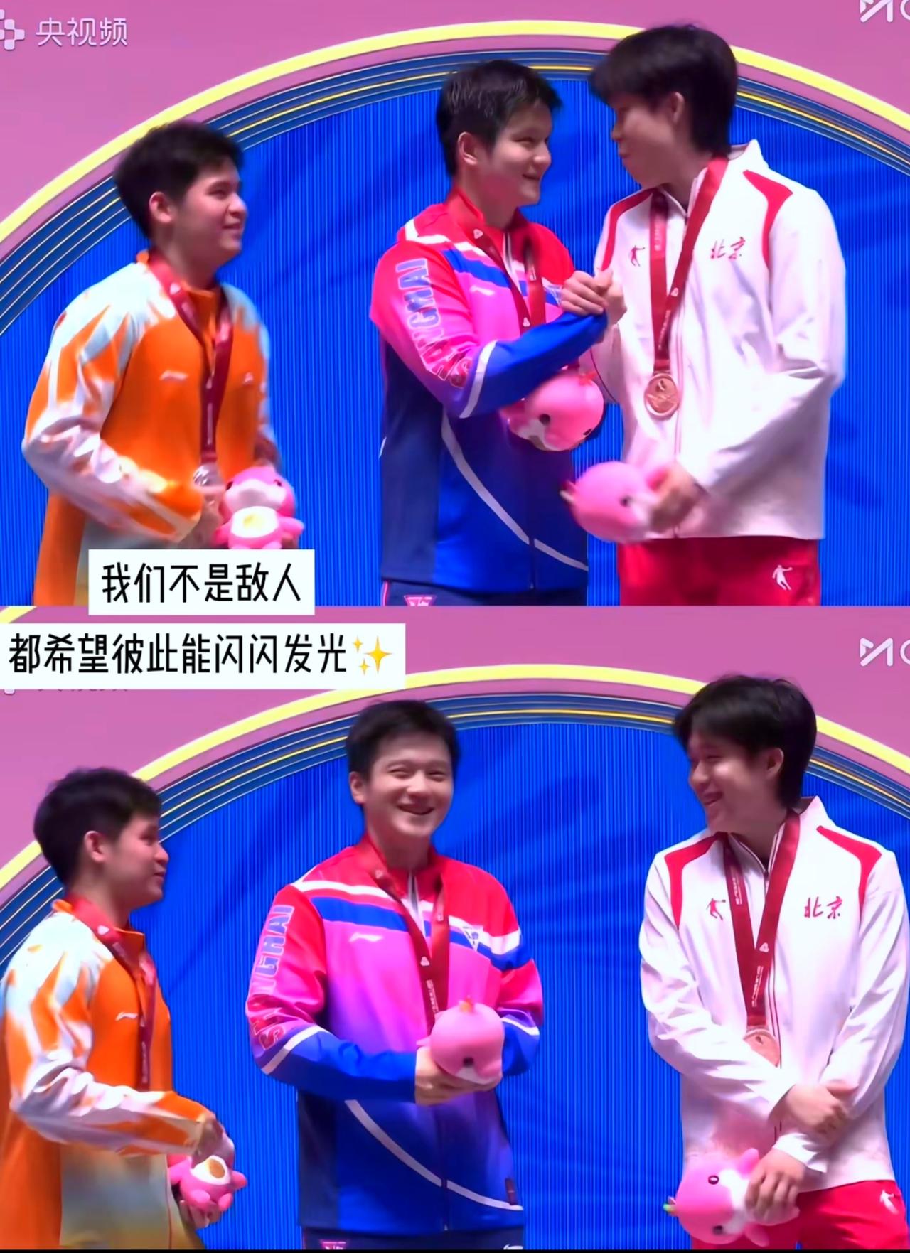 多美好的画面呀,国乒氛围真好! 樊振东王楚钦带林诗栋的样子,才是最好的传承 谁看了国乒三帅的合照不觉得暖啊!樊振东、王楚钦和林诗栋拍完照,小石头盯着偶像笑的那眼神全是崇拜,东东立马跟他握手,大头还主动说“我俩也握一个”,这氛围哪儿是队友,分明像哥哥带弟弟! 其实国乒能一直强,不光是选手技术牛,这种前辈带后辈的劲儿更重要。小石头眼里的崇拜,是对前辈实力的认可;而樊振东、王楚钦的主动亲近,是把经验和底气悄悄传给新人。就冲这份默契和传承感,难怪大家都盼着他们仨去洛杉矶奥运会。 比起赛场上的输赢,这种互相托举的画面才更让人觉得国乒有底气。你平时看国乒比赛,最容易被他们哪种互动打动?