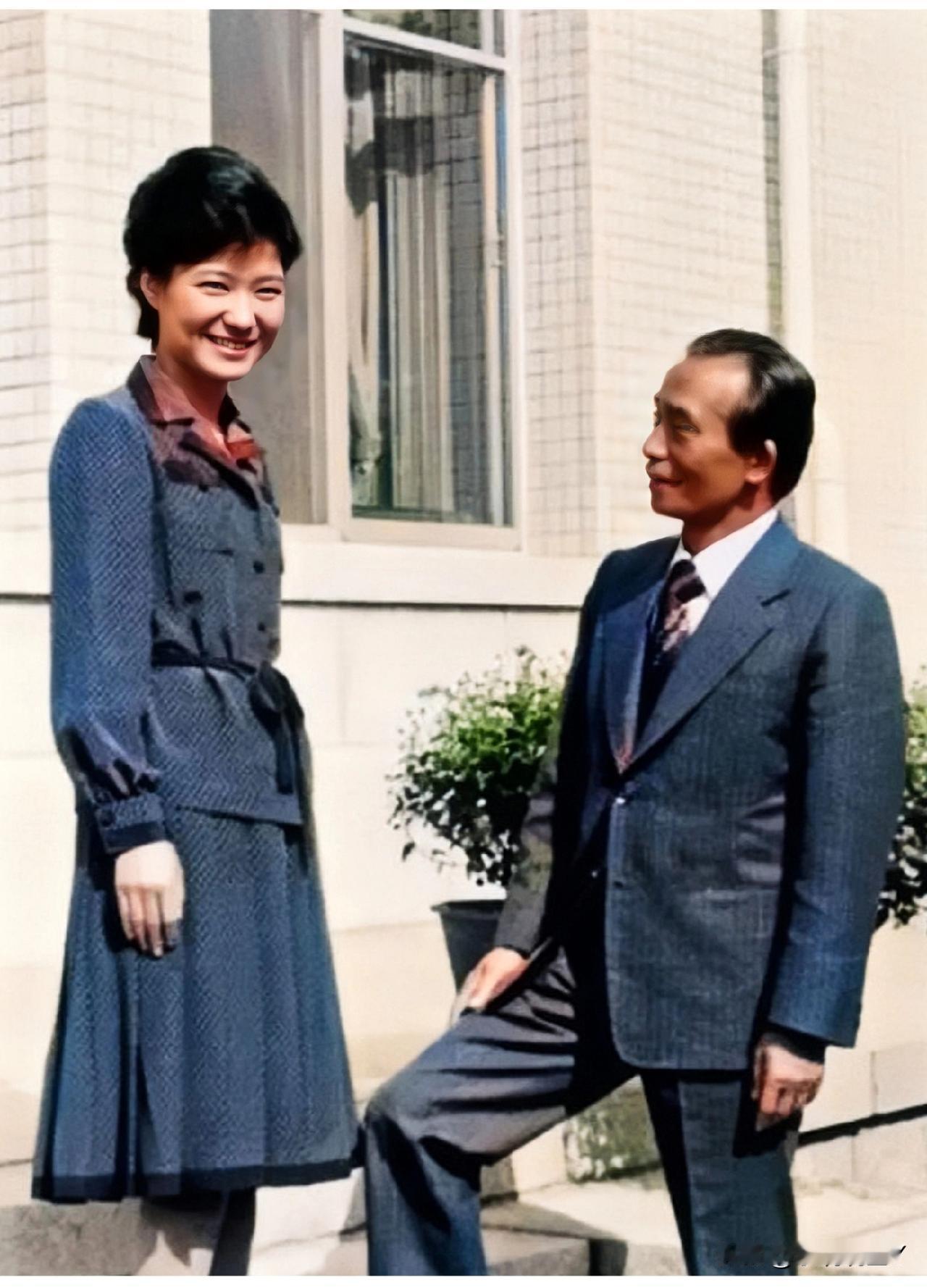 韩国前总统朴槿惠,上世纪七十年代初期与父亲朴正熙的合影老照片,时年二十出头,气质典雅,美丽大方。