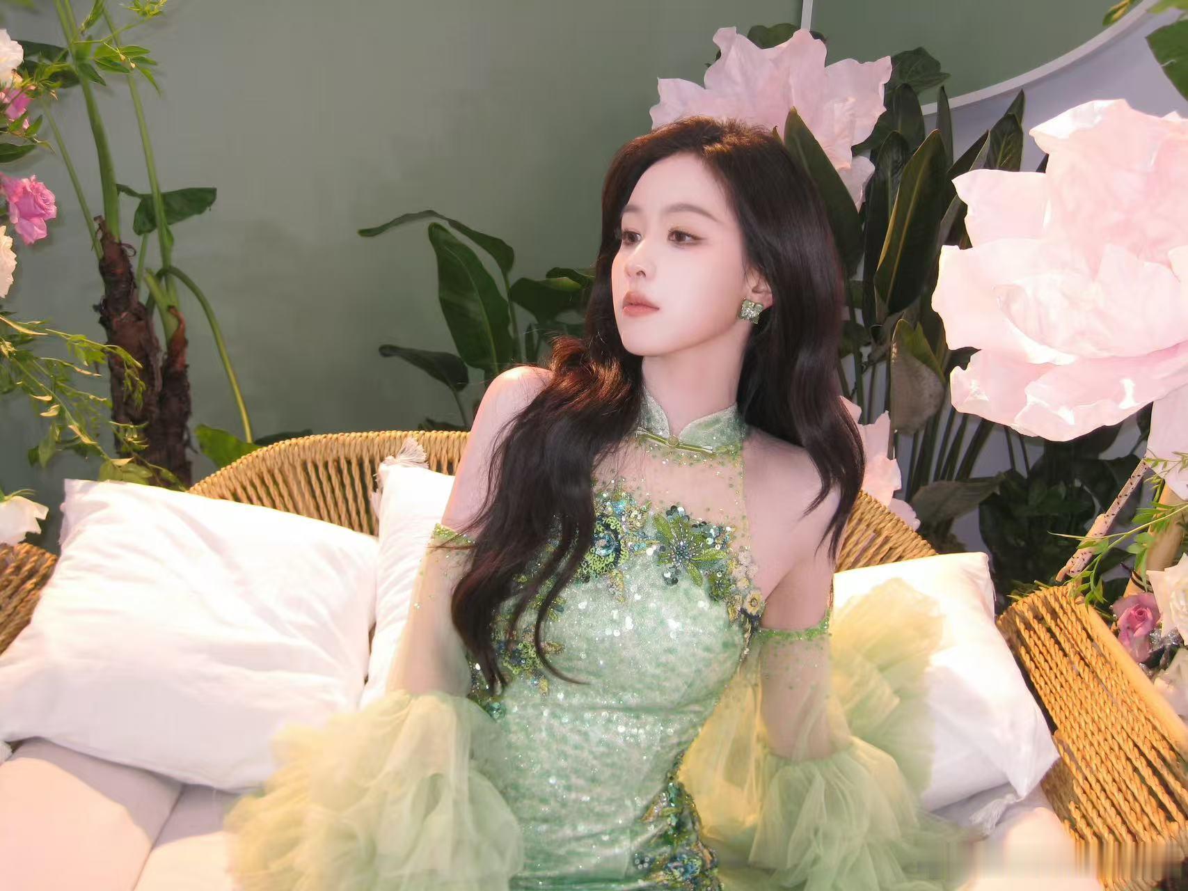 陈都灵一袭绿裙像是把春天穿在了身上,化妆师轻轻给她定妆的时候,连空气都跟着温柔了~