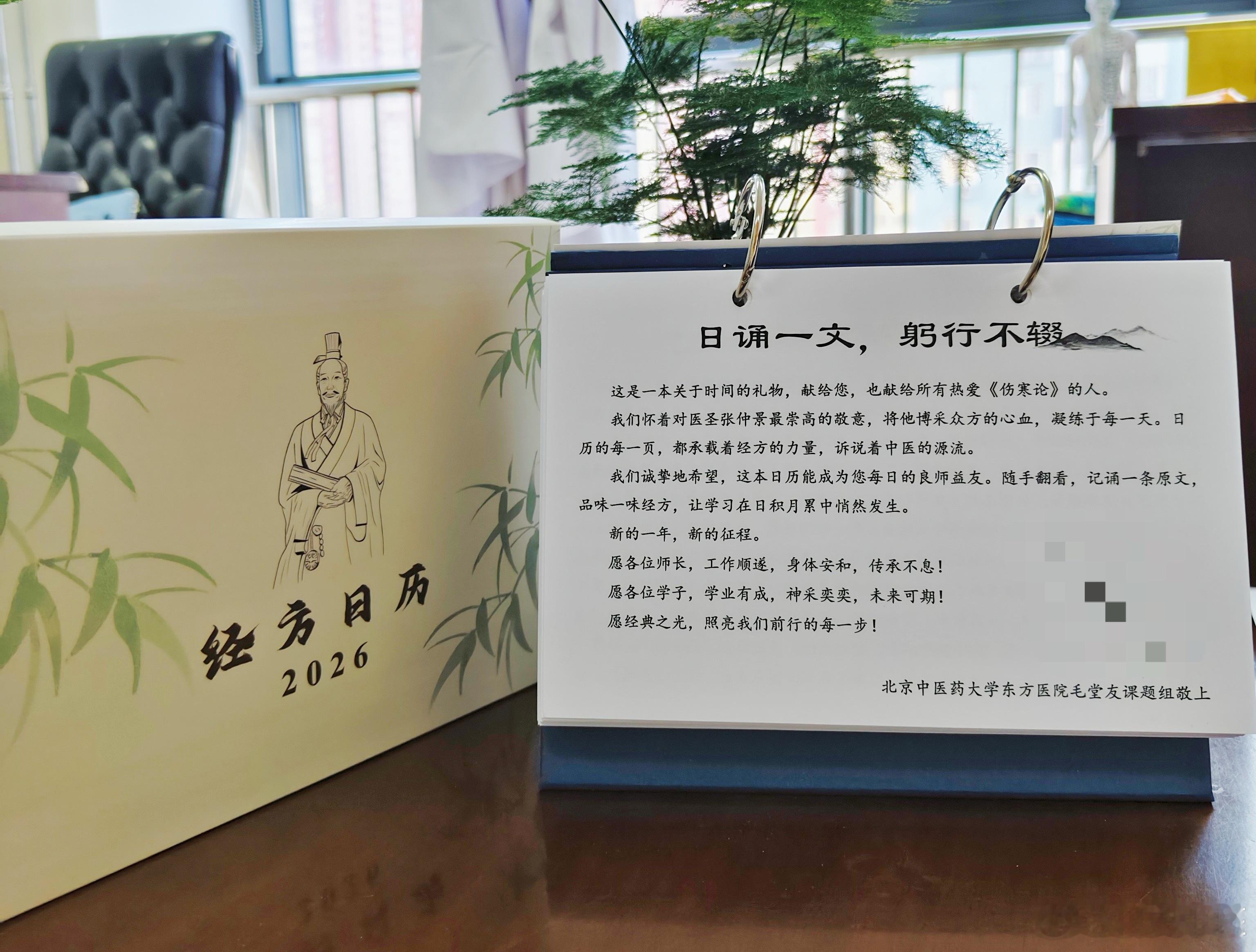 《经方日历》正式和大家见面了!这件事,好几年前,就一直想做,因为各种原因吧,一直未能成行。今年招了一个非常优秀的学生,我把想法给她说了后,她说,这件事特别好,也肯定能做做好。备受鼓舞,开始了版式设计、文字图片搭配,再到联系印刷,历经半年多,终于和大家见面了。念念不忘,必有回响!真是很有感触!当然也倍感欣慰!大家一起加油,传承经典,发扬经方!