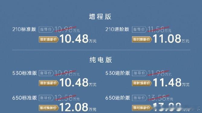 了,增程和纯电同价,10.48万元起,这个价格性价比很高!有纯电有增程,双动力来得有点迟,但好饭不怕晚。看点还是增程版本,1.5T增程器,满功率充电85kw,一升油转3.73度电,效率挺高的。配套29.165kWh电池组,CLTC纯电续航里程210公里,综合续航里程1240公里,馈电油耗5.5L/km动力电池充电效率可达3C水平,快充15分钟充满30%~80%。大家觉得这款车能打吗?