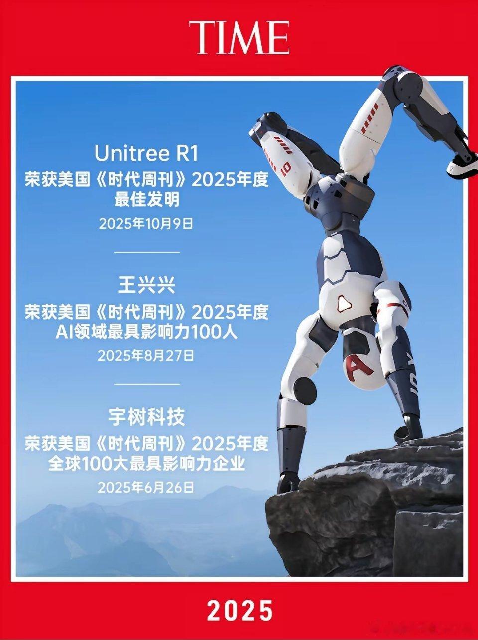 宇树科技的R1机器人获得了美国《时代周刊》2025年度最佳发明。宇树科技还是全球100大最具影响力企业。这家科技公司我一直在关注,没想到最近很快就要上市了。