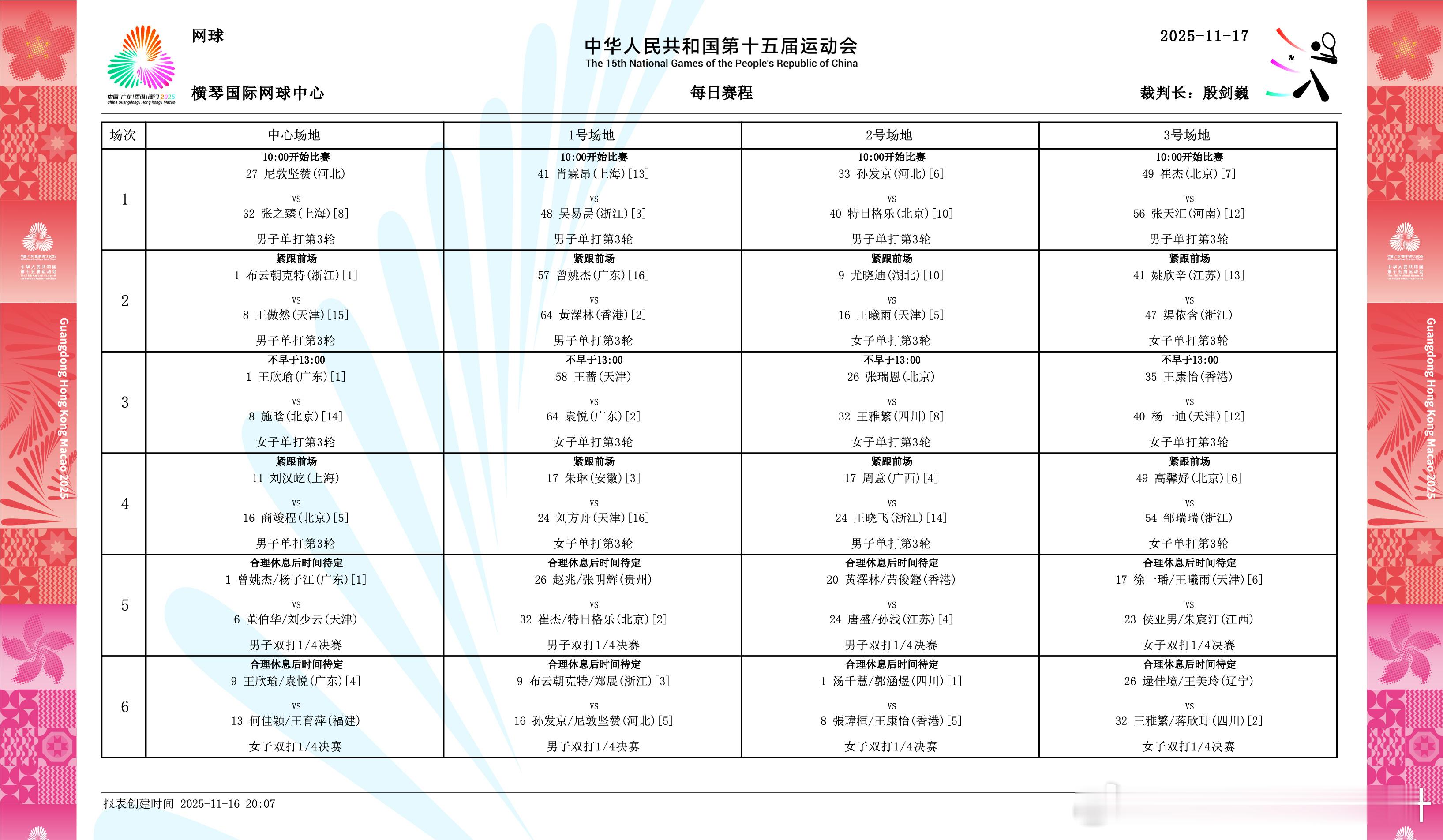 网球11月17日赛程中心场众星云集张之臻、布云朝克特、王欣瑜、商竣程轮番上阵随着