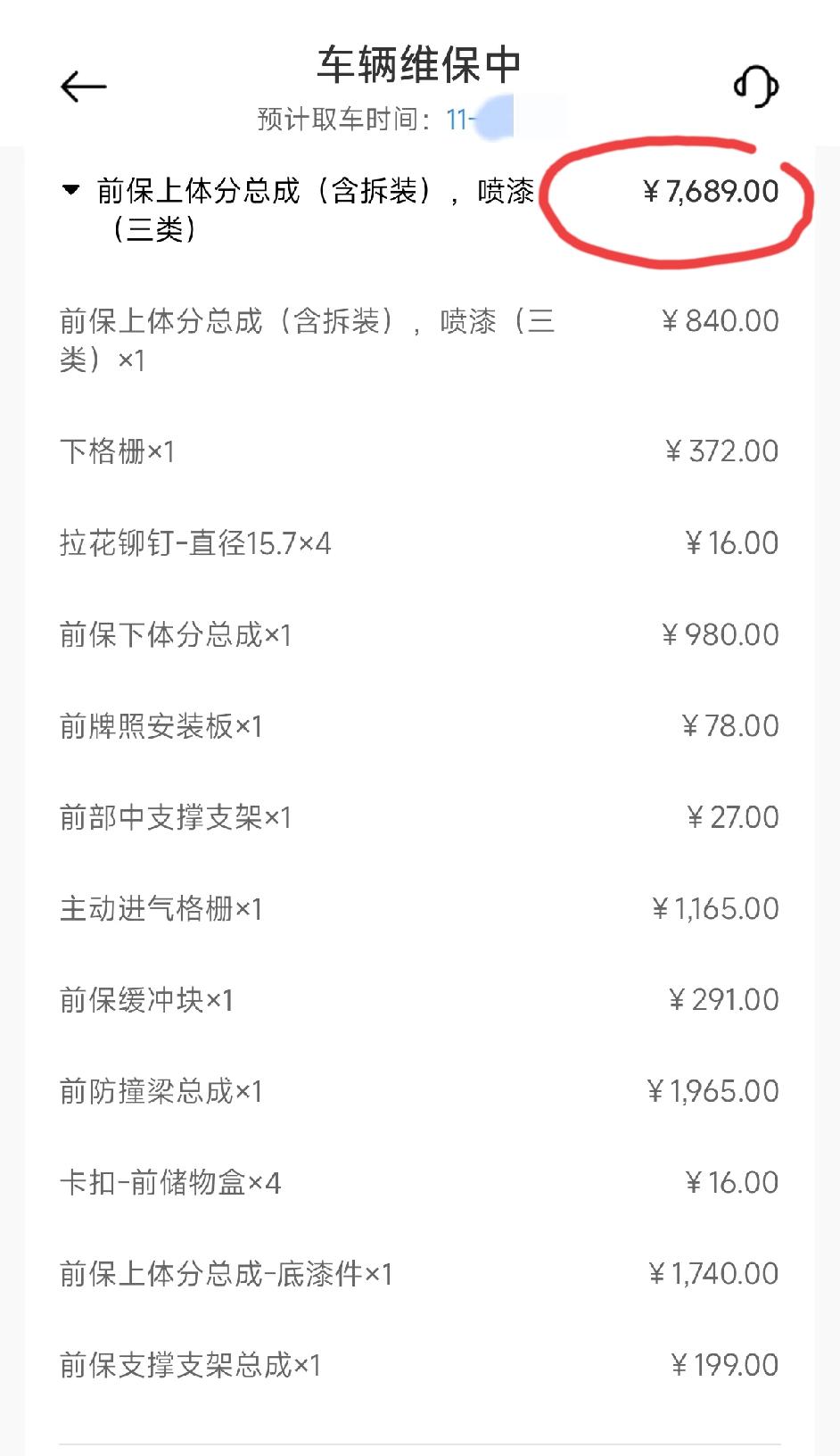 江苏,某米电车车主发文吐槽:真的搞不懂,为啥轻轻撞一下,要修这么多? 从这位车主晒出的单子可以看出,车辆维保名称为:前保上体分总成(含拆装),喷漆(三类)。金额7689元。 重点来了,这位车主在文中有提到:排队等修车一共花了4天时间,为什么要这么长时间呢,客服说前面有20多辆等着修呢! 所以说,车企卖车赚你一笔,你以为完了吗?修理费可能也是大头!你想想,一个4S店有20多台等着修,全国这么多4S店,这个数字可不是一般的大! 当然,客服的话也未必可信,可能有夸大成分!
