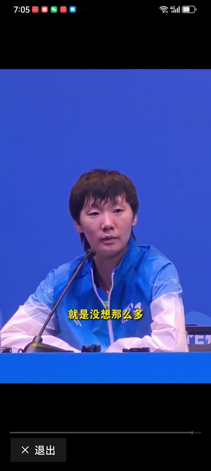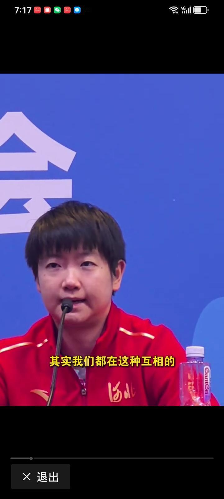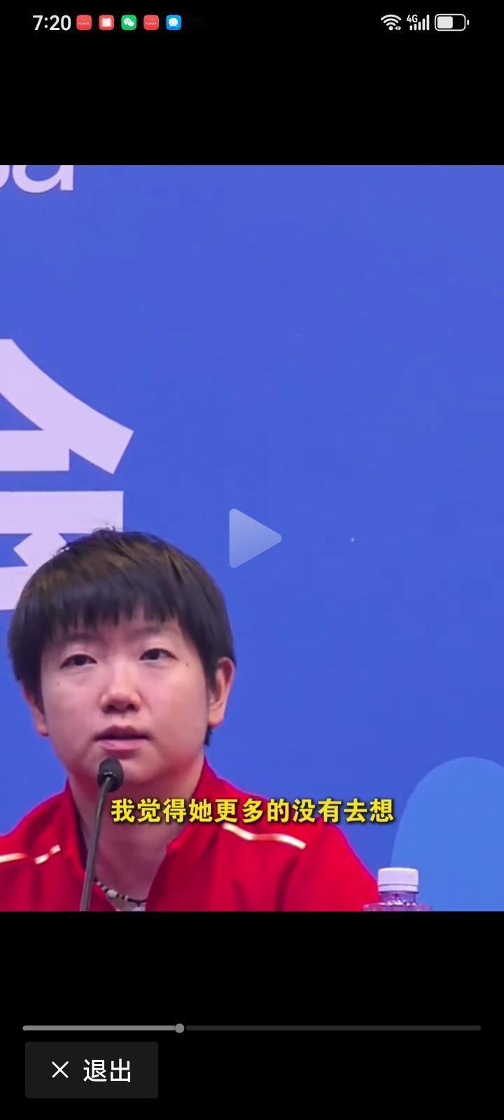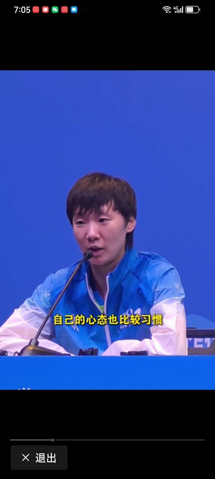 全运会乒乓球项目女单决赛后,冠军王曼昱,亚军孙颖莎一起出席新闻发布会。 王曼昱说自己落后莎莎,心态上比较习惯,落后时很坦然,也没什么好办法,也没多想一分一分去打。 莎莎则是谈曼昱的多,她说从技战术上不多说,两个人都很熟悉,她说曼昱在落后时反而更释放了,两个人都打出了各自的最好水平,王曼昱的心态更释放,自己要好好总结调整。 这场比赛曼昱赢在心态上,莎莎输在心态上,曼昱输赢都能接受,放开了打,莎莎想赢压力大放不开。莎莎以后也要学会输赢都接受,坦然面对输赢让心态上压力减少。