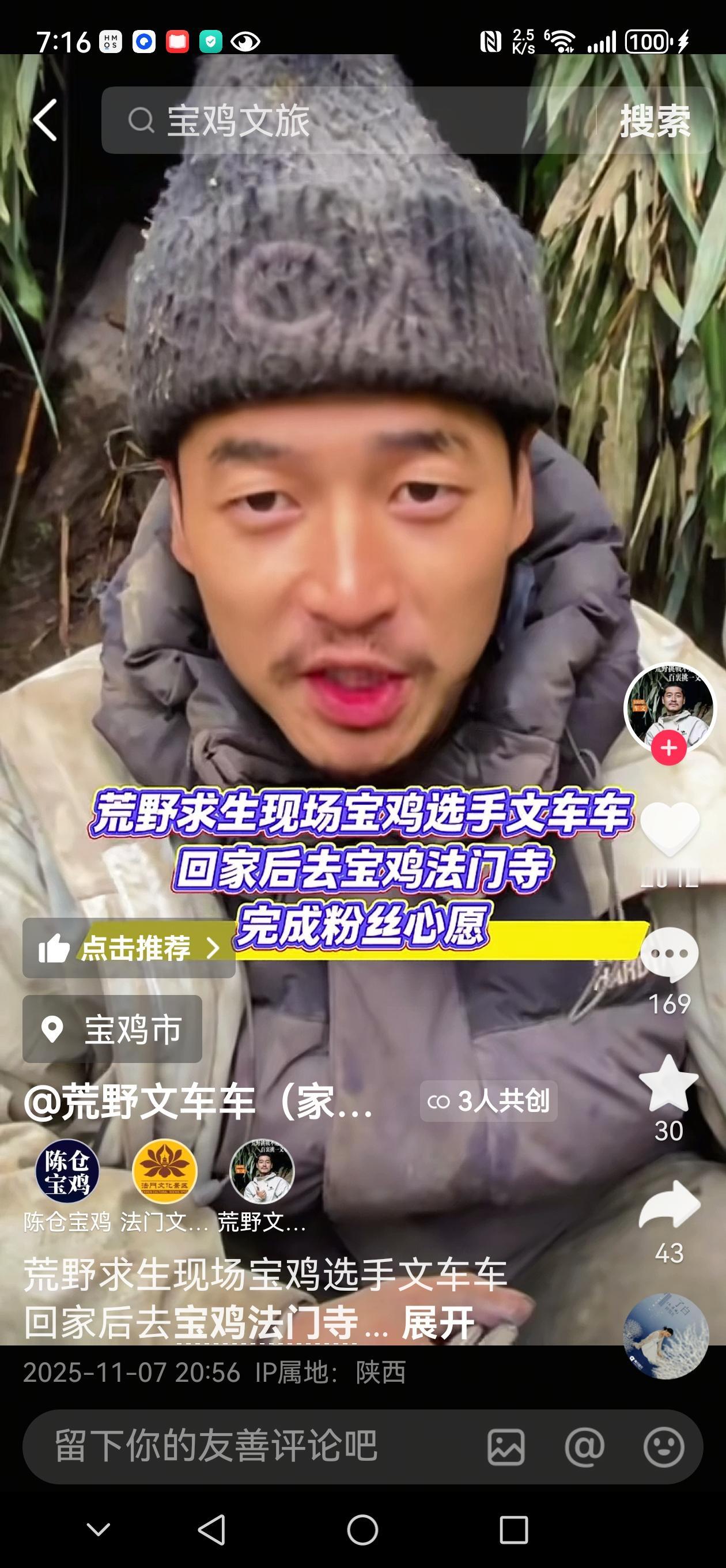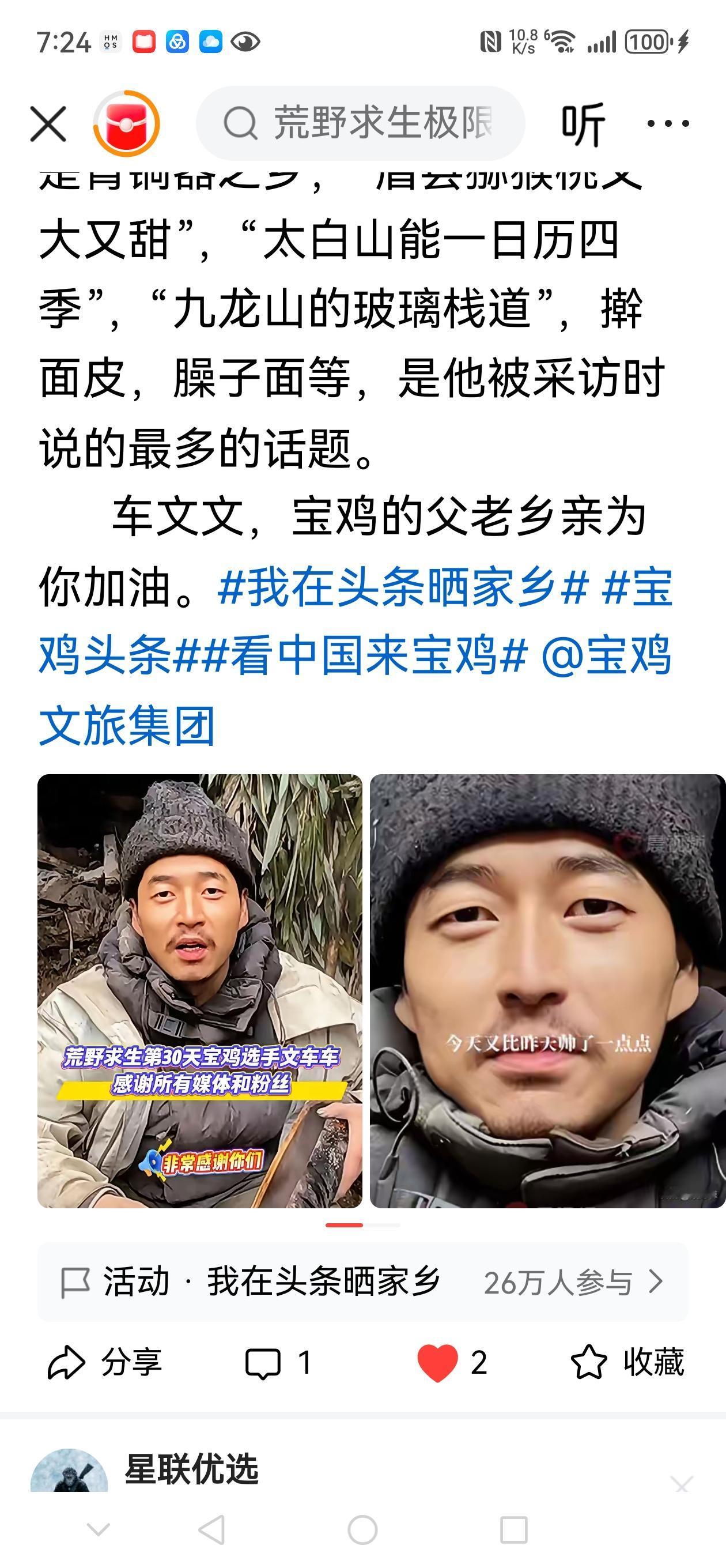 最近,一直都在关注文车车。毕竟宝鸡太需要这样有流量的人和事啦!这么酷爱宝鸡的人,大家没理由不关注支持一下下。我们不能太漠然自己的孩子一个人在荒野求生中心心念念的的念叨者宝鸡宝鸡宝鸡…