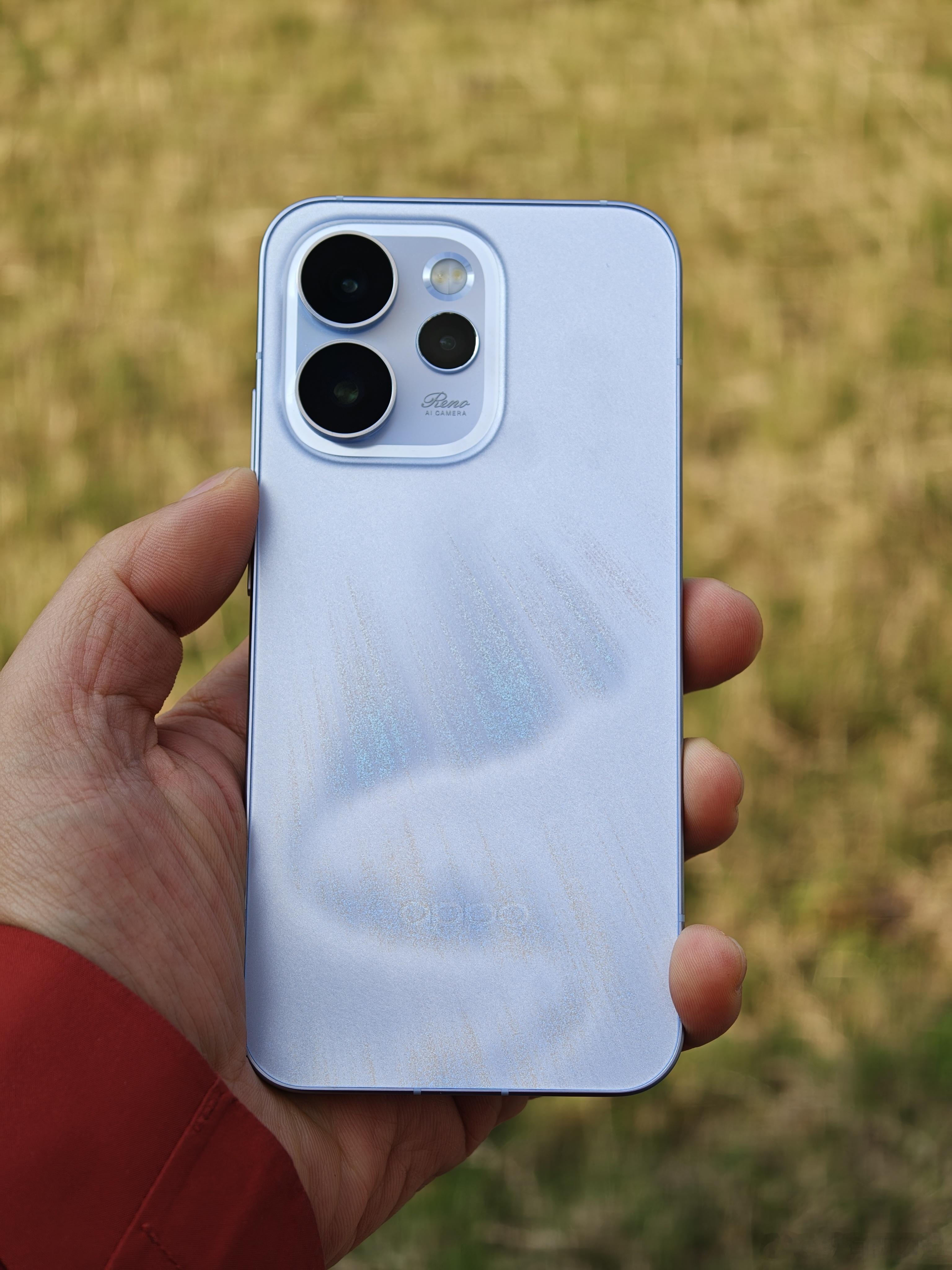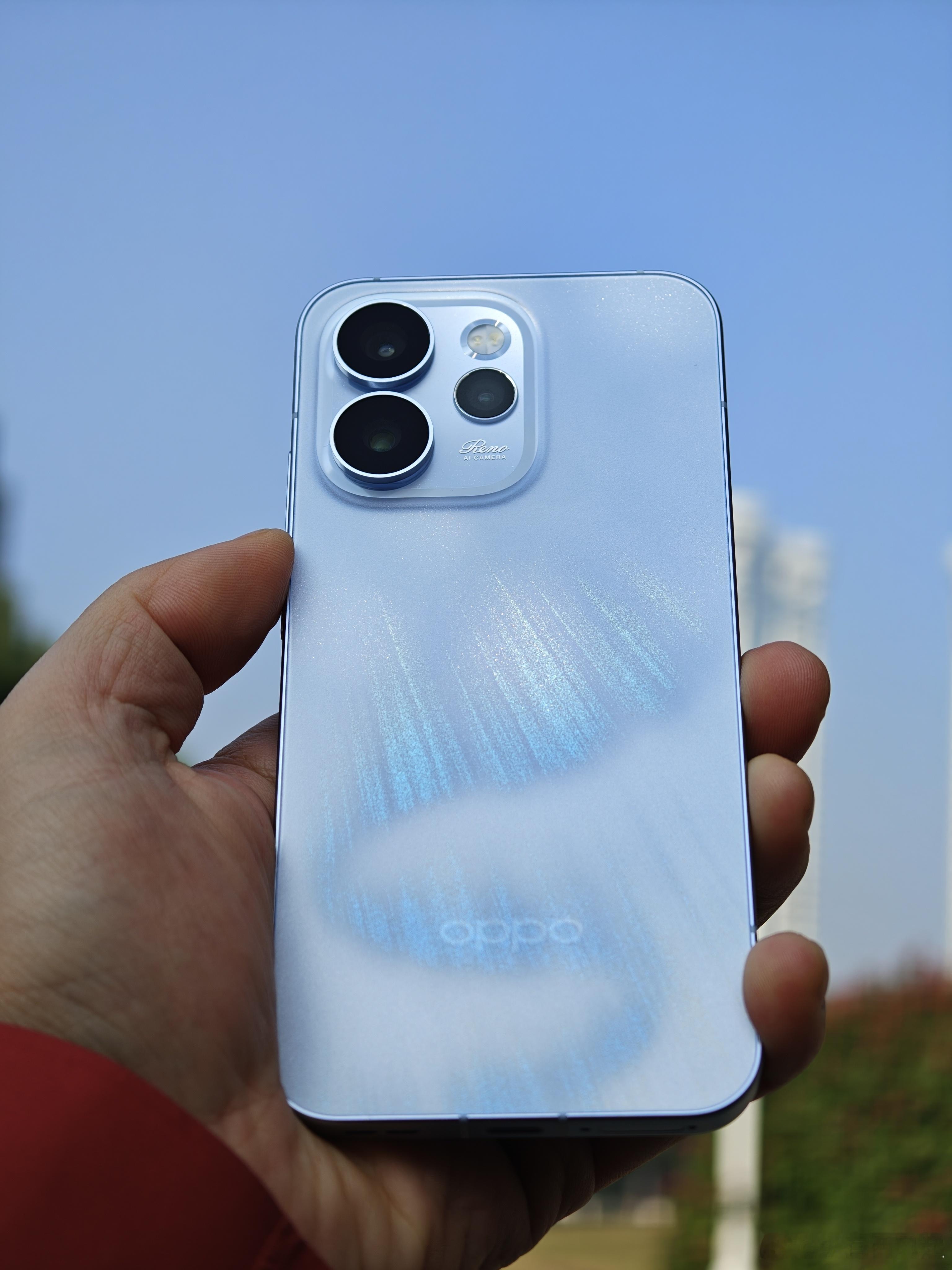 随手拍几张Reno15「极光蓝」,大家感受下这布灵布灵的外观,而且标准版的小巧机身也是盈手可握,把玩起来很舒适