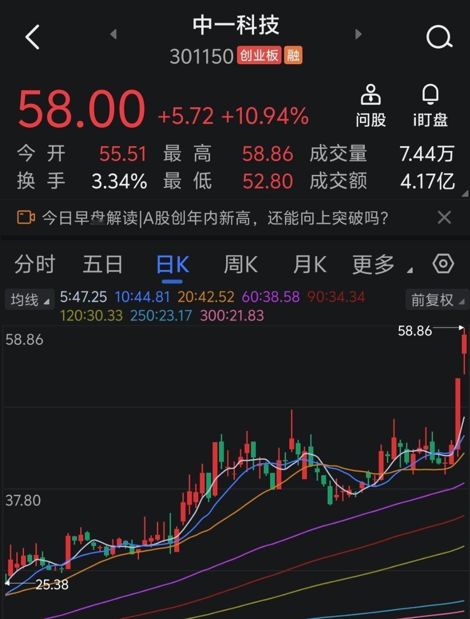 $中一科技 sz301150$ 今天继续大涨超10%,大肉在手,记得落袋为安!!