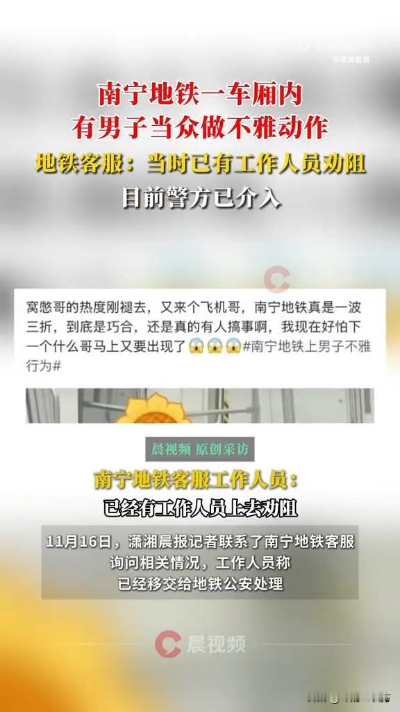 为什么现在地铁上混乱现象层出不穷? 这些不文明行为到底是人为剧本存在幕后推手?还是巧合? 近日,南宁地铁惊现男子脱衣不雅动作视频,我看了感觉有点诧异,这是磕药了? 还是纯粹的以丑博眼球?在公共场合做出这样不雅之事,我感觉正常人真的干不出来! 你们觉得这是什么情况?