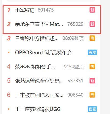 奇怪了,“雷军辟谣”的热度,竟然盖过了“华为Mate 80发布会”的热度?上午9:00,余承东准时发布了Mate 80发布会的预热信息,在我看来,这应该是今天最有热度的一件事了吧。 不过,我打开某博却发现,“雷军辟谣”却登顶了第一名,让我感到有一意外,雷军发文辟谣这个事儿不是昨天发生的嘛,昨天已经有太多人在讨论了,今天怎么又突然冒出来了呢? 我刚刚去刷新看了一下,还是这样的,这就有点莫名其妙了吧!