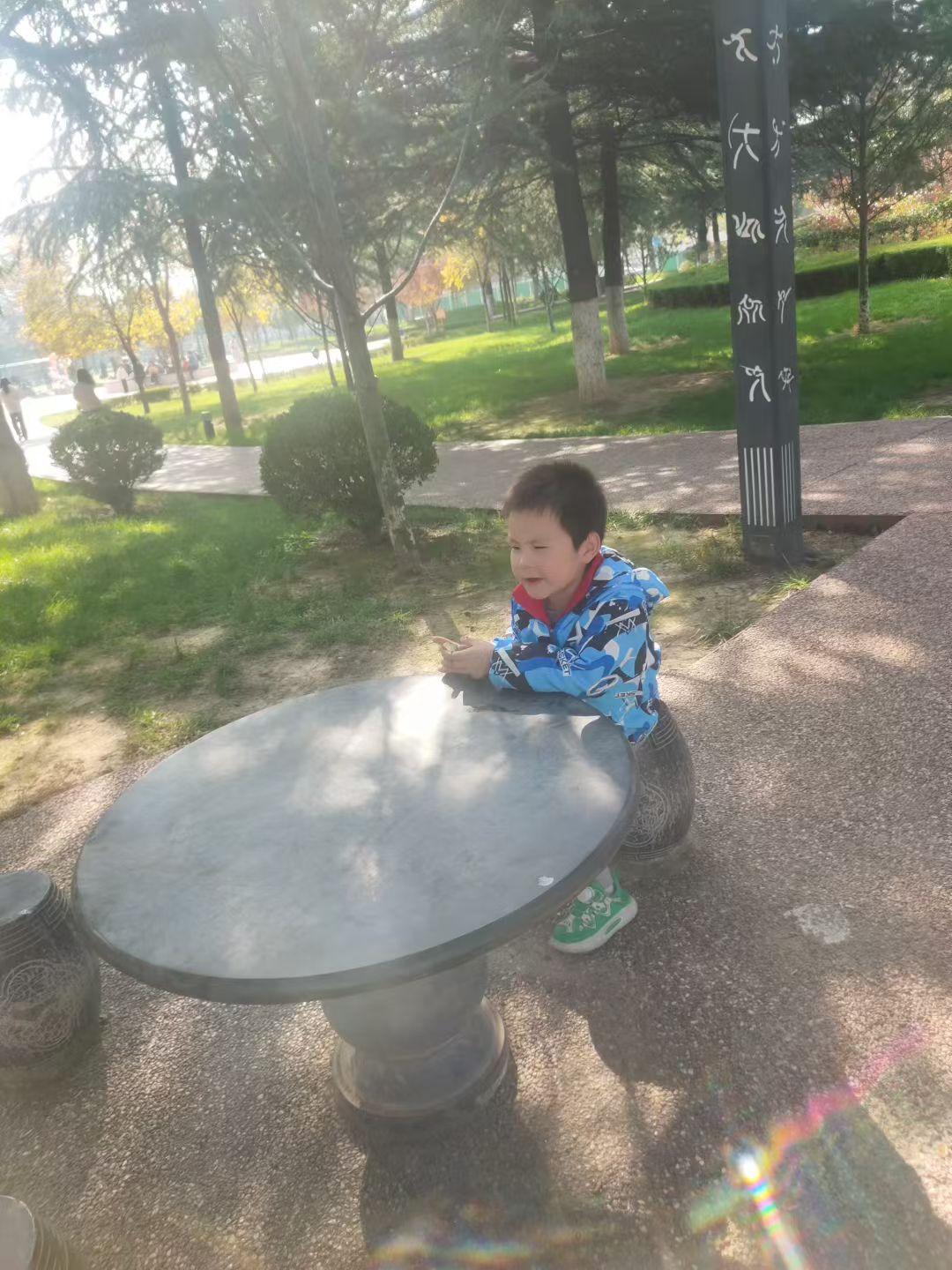 冬日生活打卡季秋日的阳光裹着风,把公园的树影揉得软乎乎。小家伙趴在石桌上,连风里都裹着他没说完的小欢喜。
