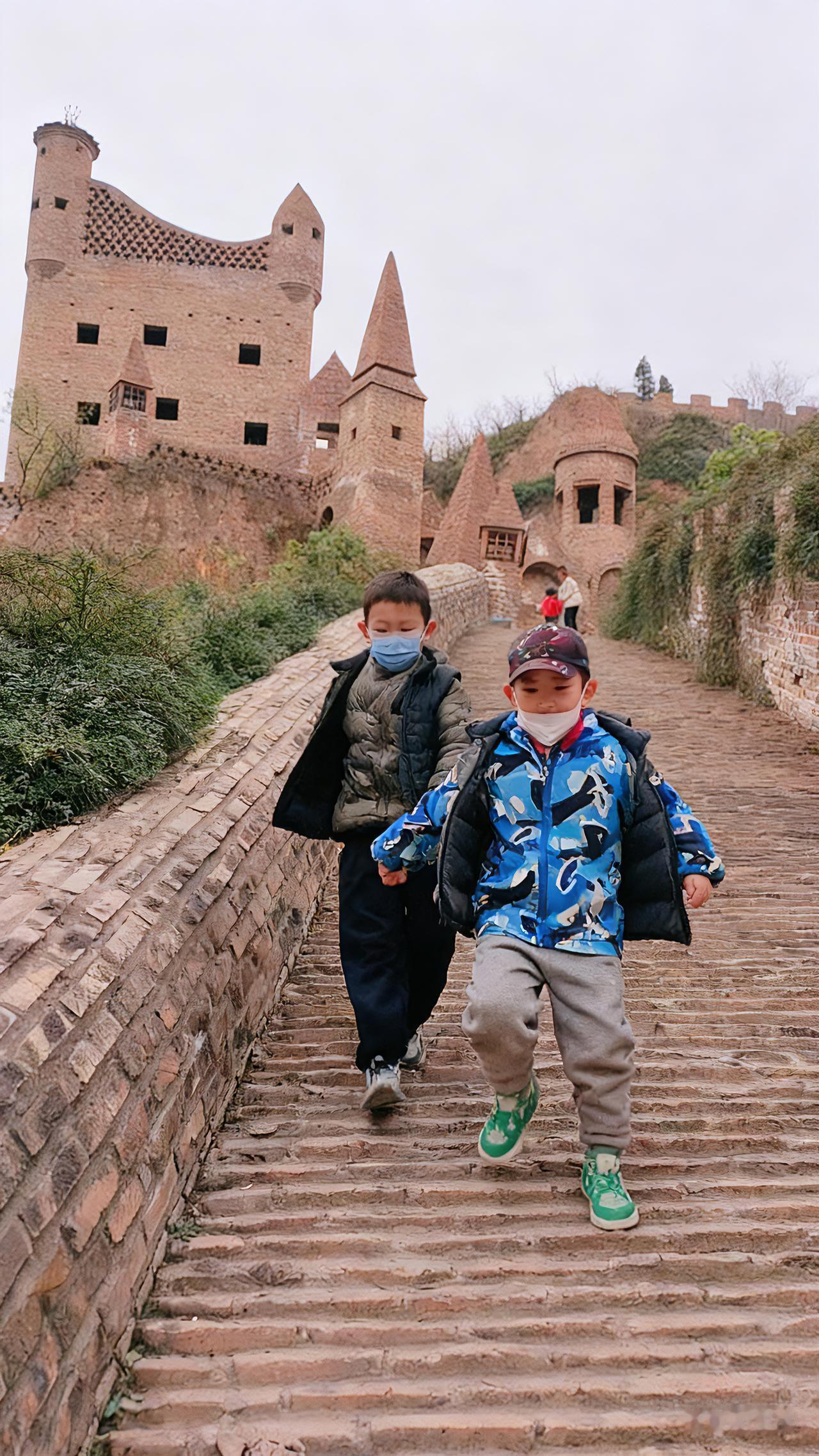 一张图证明冬天来了砖红色的城堡藏在灰蒙蒙的天里,像从童话里抠出来的一角。小家伙穿着棉衣带着口罩踩着石阶往上蹦,连风里都裹着他没说尽的新奇。