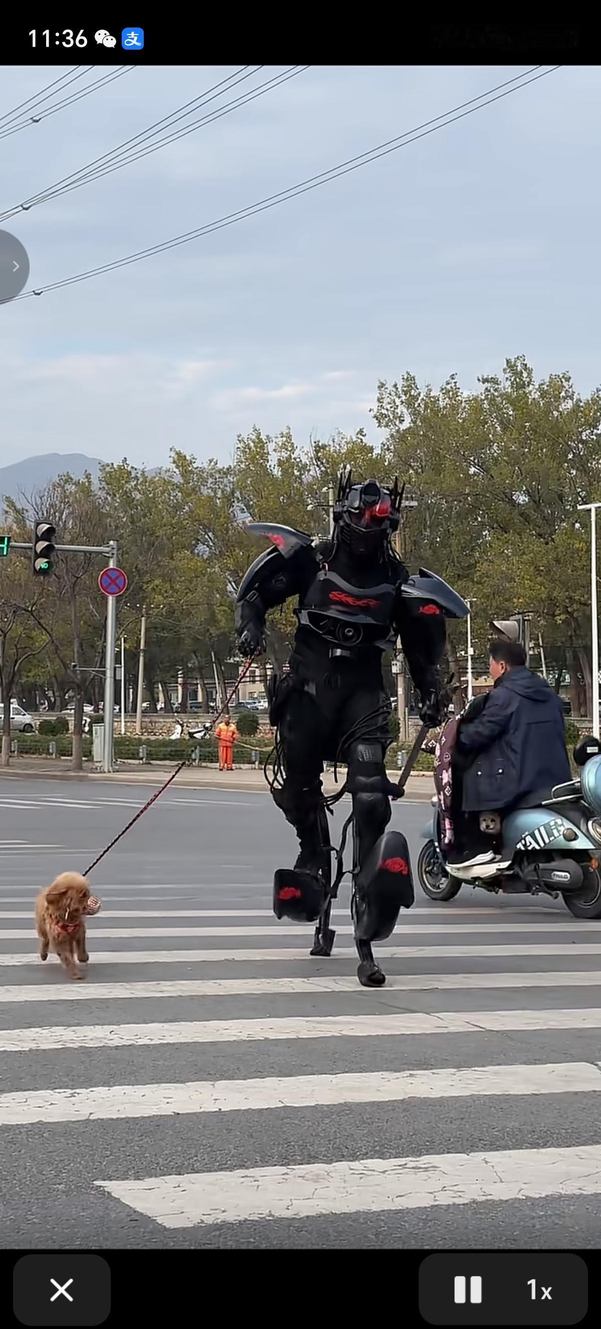 狗子被机器人“胁迫”了,数次试图逃跑,可惜栓绳了,没能成功逃脱。就这么“被迫营业”了,狗子内心瑟瑟发抖“这是谁,我不认识他”。 它一定在内呐喊“爸爸你在哪里,快来救救我”。好可怜的狗狗,又被无良的主人耍了,这个穿着机器人战甲的就是它的主人,这么对待狗狗真是无良啊!