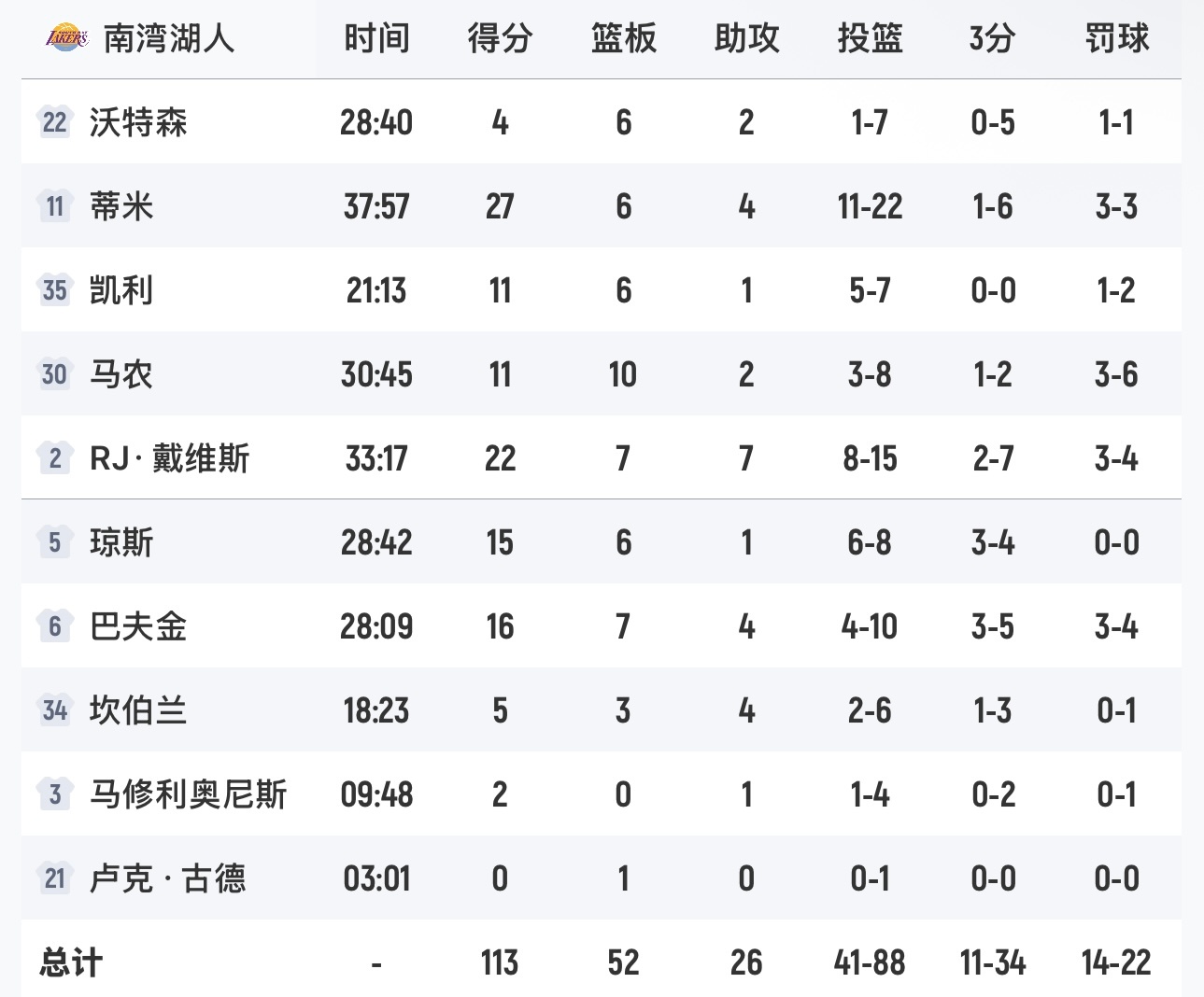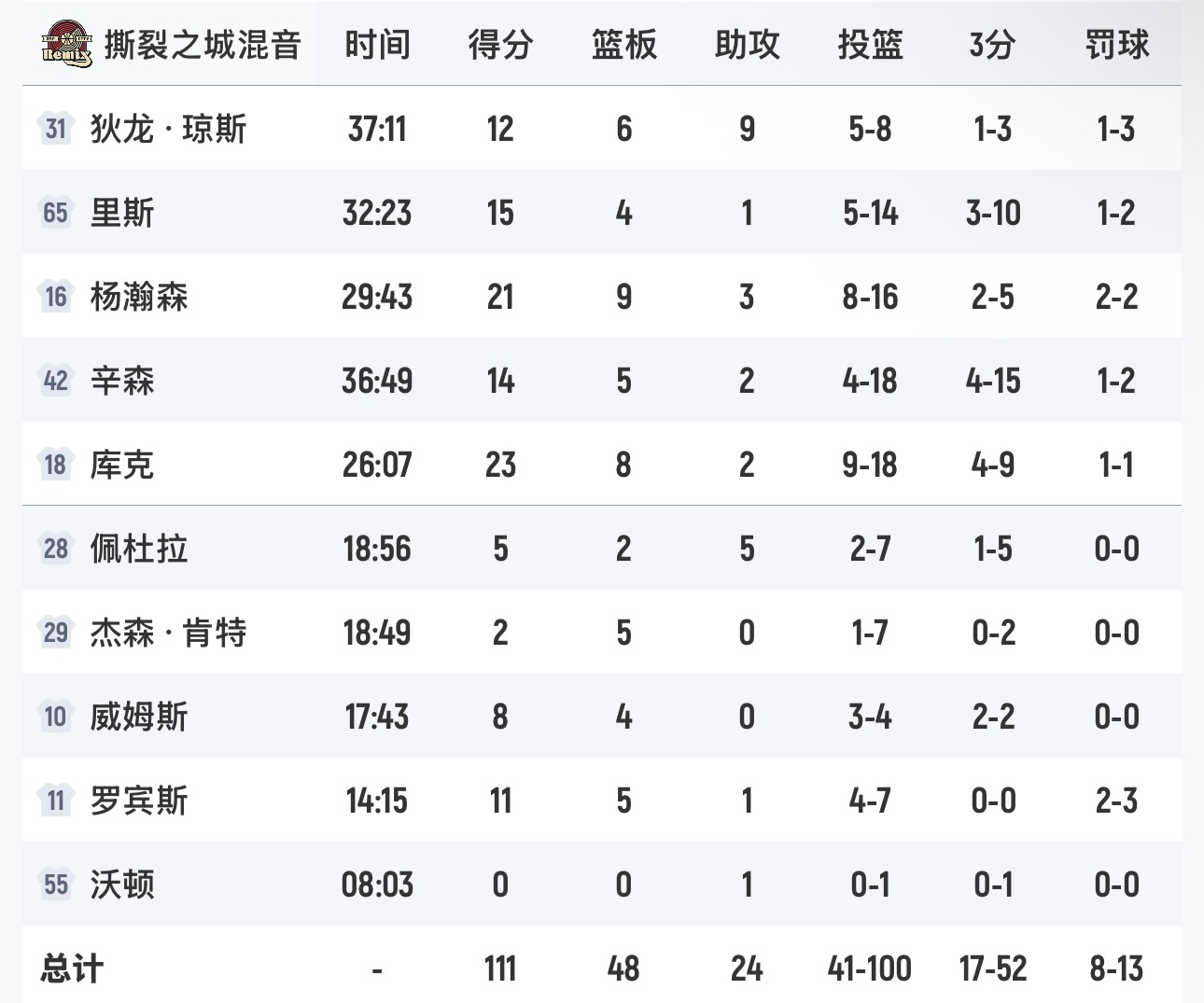 杨瀚森21分9篮板3助攻3盖帽,撕裂之城混音队111-113南湾湖人队。