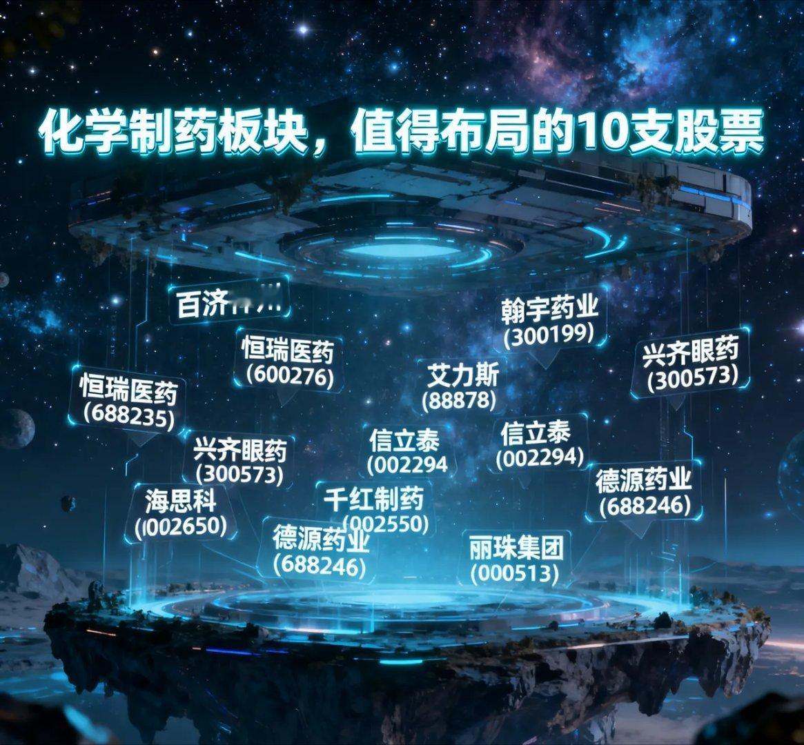 化学制药板块核心标的梳理:10支潜力股引领创新与成长浪潮化学制药板块作为医药行业的核心赛道,兼具创新驱动与业绩确定性,在研发升级、政策支持与市场需求的多重催化下,一批具备核心技术、丰富管线或细分领域优势的企业脱颖而出。以下为10支值得重点关注的化学制药标的,从业绩表现、核心优势与发展前景展开深度解析:1. 百济神州创新药领域头部标杆,2025年第三季度业绩爆发式增长,营收同比增幅44.21%,净利润更是飙升130.88%。凭借丰富的产品管线与强劲的研发实力,在肿瘤领域布局广泛,同时国际化进程持续加速,海外市场拓展为业绩增长注入新动力,长期发展前景广阔。2. 恒瑞医药国内化学制药龙头企业,国内化学制药龙头企业,即便面临集采压力,仍保持稳健增长态势。2025年第三季度营收增长14.85%,净利润增长24.5%,彰显强大经营韧性。公司持续加大研发投入,不断优化产品结构,在创新药领域持续发力,凭借深厚的行业积淀与完善的产业链布局,稳居行业第一梯队。3. 翰宇药业国内多肽药物研发与生产的领军企业,2025年一季度净资产收益率高达11.39%,盈利能力突出。核心亮点在于自主研发的全球首创GLP-1R/GIPR/GCGR三靶点激动剂HY3003,构建了完善的创新药研发体系,契合当下代谢性疾病等领域的市场需求,未来增长潜力巨大。4. 艾力斯聚焦非小细胞肺癌小分子靶向治疗赛道,自主研发的第三代EGFR-TKI抑制剂伏美替尼已成功上市,市场认可度高。同时布局KRAS G12D抑制剂等潜力产品,研发管线具备稀缺性。2025年一季度净资产收益率达7.43%,盈利能力较强,在肿瘤靶向治疗领域竞争力显著。5. 兴齐眼药深耕眼科处方药物细分领域,形成差异化竞争优势。自主研发的1类生物新药SQ-22031滴眼液已进入Ⅱ期临床,0.01%阿托品滴眼液Ⅲ期临床已完成,管线推进顺利。2025年一季度净资产收益率高达8.75%,业绩增长动能充足,有望持续领跑眼科创新药赛道。6. 信立泰化学制药功底深厚,同时在单抗、医疗器械领域多点发力,业务结构持续优化。背靠深圳特区,充分享受当地创新政策扶持与产业资源优势,研发创新能力不断提升,凭借多元化的产品布局与扎实的技术积累,具备较好的长期发展前景。7. 海思科化学制药领域的“全能选手”,不仅在传统化学制药领域功底扎实,还积极布局单抗等高门槛创新药及医疗器械赛道。全产业链布局完善,能够有效抵御行业周期波动,在市场竞争中形成独特优势,业绩增长的稳定性与弹性兼具。8. 千红制药国内肝素原料药与制剂核心企业,在生化酶类药物研发生产领域持续深耕,奠定坚实产业基础。近年来积极向肿瘤创新药赛道转型,自主研发的国内首个CDK9靶向抑制剂QHRD107已完成Ⅱa期临床,转型进展顺利,为公司打开新的增长空间。9. 德源药业专注于代谢性疾病慢病治疗药物领域,精准切入市场需求旺盛的赛道。凭借自主研发的1类新药DYX116强势布局创新药领域,降糖适应症处于Ⅰ期临床,减重适应症已获批临床试验,管线布局贴合市场热点,未来发展值得期待。10. 丽珠集团深耕消化道、辅助生殖及精神神经三大核心领域,形成鲜明的业务特色。以创新药与高壁垒复杂制剂为核心竞争力,研发成果丰硕,其中自主研发的全球首个阿立哌唑微球更是彰显行业领先实力。在创新药赛道持续突破,核心产品市场份额稳固,竞争力较强。整体来看,这10支标的覆盖创新药、细分领域龙头、转型突破型企业等多种类型,均具备各自的核心优势与增长逻辑。化学制药板块未来将持续聚焦研发创新、管线落地与国际化拓展,投资者可重点关注研发管线推进、业绩兑现能力及政策影响等关键因素,把握细分领域龙头与高潜力创新药企的投资机会