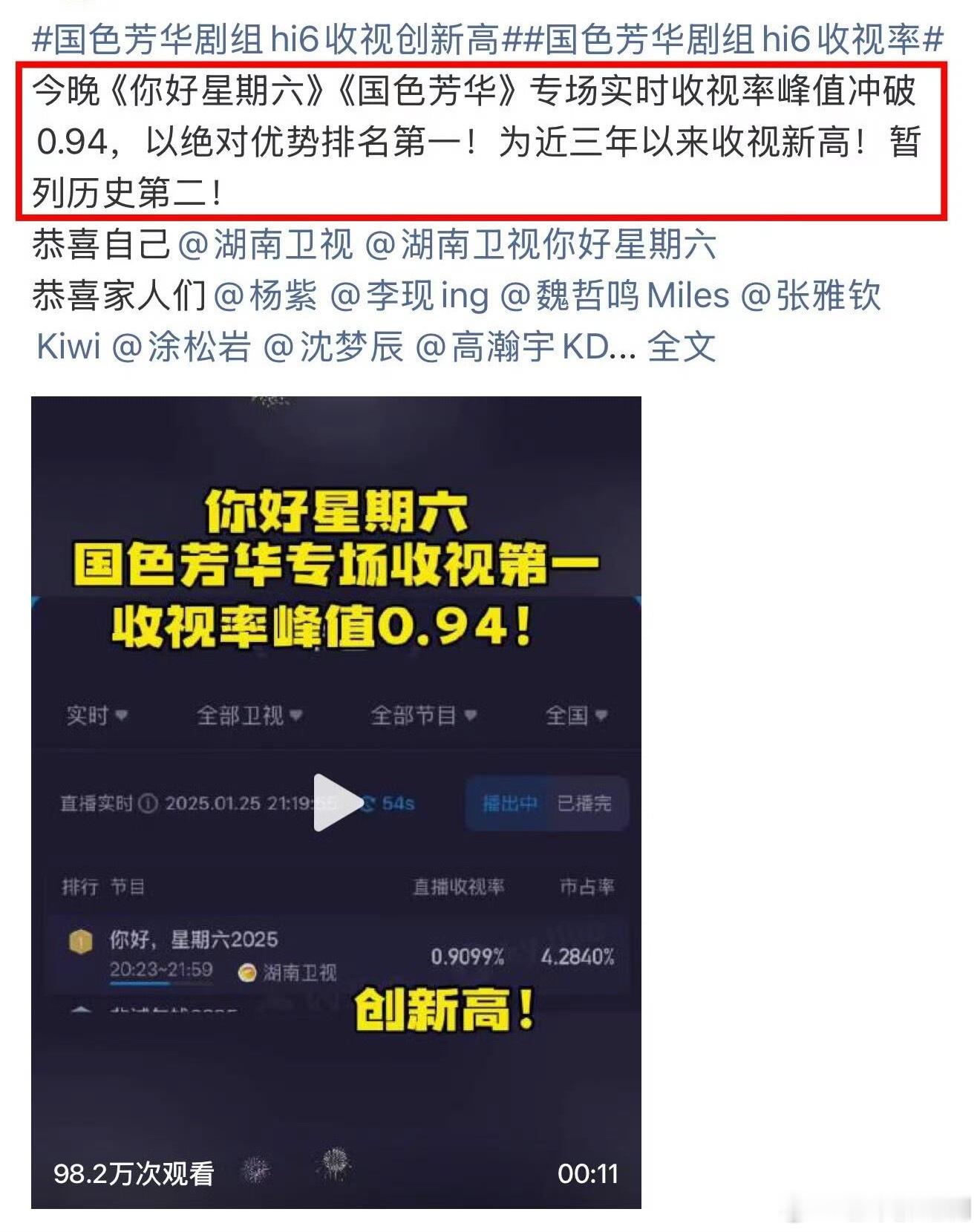 杨紫《国色芳华》hi6剧宣原来是芒果历史第二,不仅是2025第一也是所有剧宣中收视率第一,近三年收视新高