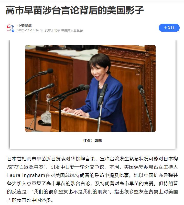 有一种强烈的预感,这一次高市早苗的恶劣挑衅,这是美国和日本协同的结果!中美贸易战刚进入休兵状态,高市早苗就在台湾问题上挑事,这种无缝衔接,很难不让人起疑心。 从中美关系的角度而言,外界普遍预期明年四月份特朗普访华,中美必谈台湾问题。 根据美国国务院数据,2023年对台军售总额达23亿美元,比2022年暴涨45%,光是“海马斯”火箭炮系统就卖了10亿。 这些武器倒不是真要帮台湾“自卫”,而是像给赌徒发筹码——赌的就是台当局会拿着这些装备往火坑里跳。 就像2022年佩洛西窜台前,美国先默许台当局把“汉光演习”搞成“反攻预演”,等大陆反应激烈了,再假惺惺地出来“澄清”。 特朗普政府的操作更绝,表面上喊着“不支持台独”,背地里却给日本松绑。 2024年美日修订《防卫合作指针》,允许自卫队介入台海“突发事态”,这等于给高市早苗的挑衅披上“合法外衣”。 更狠的是技术捆绑——美国默许日本发展远程导弹,2025年日本防卫省预算里,射程2000公里的“战斧式”巡航导弹研发经费暴涨300%。 这些导弹摆明了是给台当局壮胆,就像给赌桌上的庄家发了一副透视牌。 在中美博弈的牌局里,台湾从来不是棋手而是棋子。 2023年中美贸易额突破7000亿美元,但半导体进口额就占了1800亿,其中台积电代工的芯片占美国进口量的65%。 特朗普政府宁可让日本冲在前面放狠话,自己躲在后面数钱,这种“离岸平衡”策略玩得比冲绳美军基地的无人机还熟练。 就像2024年中美芯片战白热化时,美国一边对长江存储加征200%关税,一边默许台积电给华为代工5G芯片——左手打右手,右手数钞票。 不过东京这回玩得有点过火。 高市早苗把台湾问题包装成“日本存亡危机”,摆明了是想复制安倍晋三的“价值观外交”,但现实是日本对台军售占其国防预算的12%,而台湾对日贸易逆差每年超过200亿美元。 这种不对称依赖就像日本汽车厂商一边骂中国新能源车,一边把混动技术卖给比亚迪——嘴上全是主义,心里全是生意。 更讽刺的是,美国在台协会(AIT)2025年报告显示,台当局对美军购的装备中有38%根本无法融入美军作战体系,就像给日本自卫队配备的F-35B,超音速巡航时连冲绳基地的雷达都锁不住。 这种“表面兄弟情”下,藏着的是美国军工复合体的饕餮胃口——2024年洛马公司光是卖给台湾的“爱国者”导弹,利润就超过其在华汽车业务全年营收。 在中美博弈的棋盘上,台湾问题就像德州扑克里的“河牌”,不到最后一刻永远猜不透底牌。 特朗普政府深谙此道:2025年5月中美关税谈判前,先让日本在台海搅局,把大陆的注意力引向东海,自己则趁机在半导体、稀土领域加紧收割。 就像2023年中美光伏关税战期间,美国商务部突然松口允许台积电为英特尔代工芯片——打一巴掌揉三揉,既敲打对手又安抚盟友。 但这种“战略投机”风险不小。 2024年解放军环台军演时,山东舰航母战斗群直接抵近日本冲绳海域,东风-21D导弹的射程覆盖整个琉球群岛。 这就像在赌桌上亮出底牌:你敢把台湾当筹码,我就敢掀了赌桌。 更狠的是经济反制——2025年前三季度,中国对日稀土出口量暴跌62%,直接导致日本电子产业库存告急,索尼不得不停产PS6三个月。 说到底,美日这场“双簧戏”演得再热闹,也改变不了台湾是中国领土不可分割的事实。 就像2022年佩洛西窜台后,解放军歼-20战机首次进入台湾海峡中线,用实际行动告诉某些人:在1949年划定的红线前,任何政治操弄都是自欺欺人。 如今高市早苗的挑衅,不过是给历史进程添了点插曲,就像电影里的反派总爱在主角登基前跳梁——热闹过后,该落幕的还得落幕。