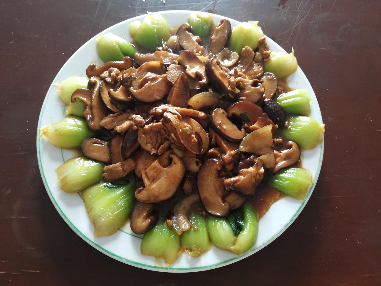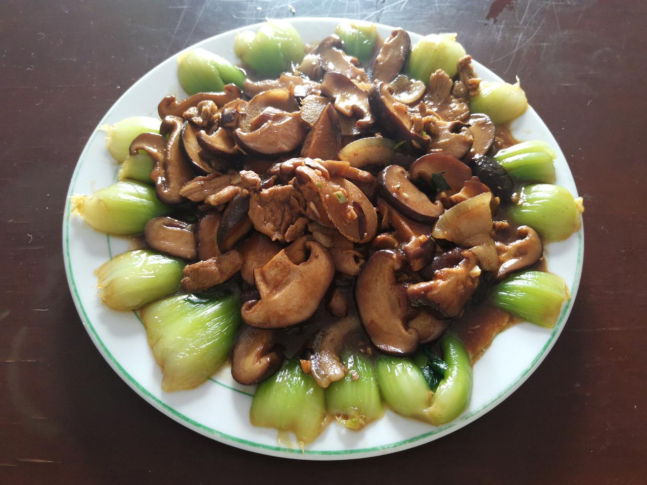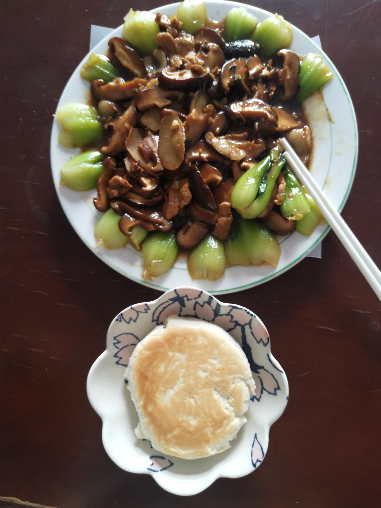 今日午餐, 看看是什么? 香菇油菜还有肉, 好吃又好看, 董师傅手艺可真好。 董师傅 董大厨餐饮