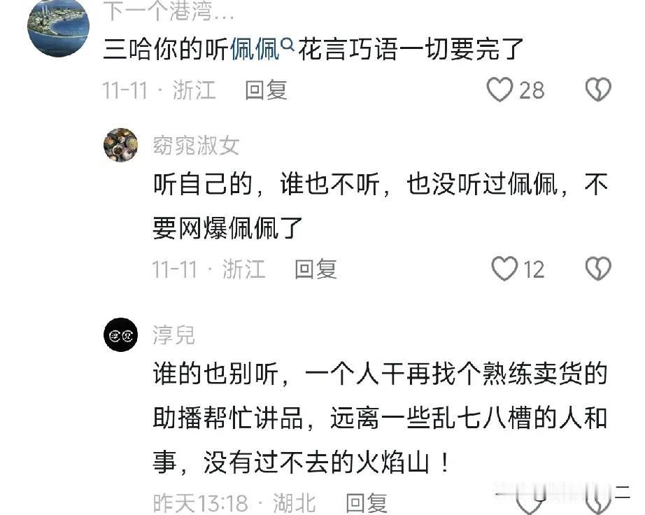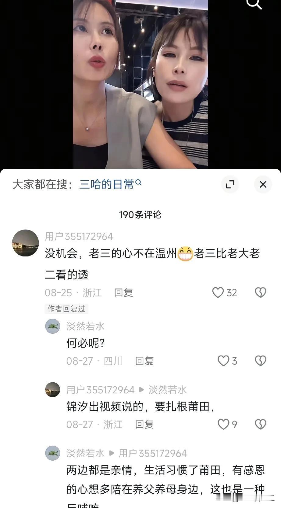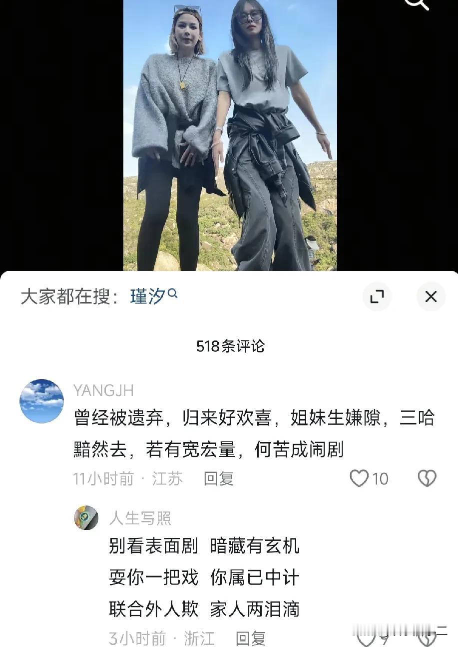 大家有没有发现,温州一家人是由大哈说了算。 5万生活费是大哈提出来的,出来辟谣的也是她,哈爸哈妈从始至终都不做回应。 很多网友说从大哈和二哈回意大利之后,矛盾就产生了。 那时候大哈的女儿也开通直播,老麦也有很多粉丝支持,他们各种更新视频,热度全在大哈这里。 这时候的瑾汐像极了“孤家寡人”,和佩佩开启了一次直播,效果并不理想。 而且瑾汐三姐妹最近两次直播带货的时候,一直是大哈做主角,这才发现原来大哈能说会道。 她在直播间里介绍产品,侃侃而谈,瑾汐站在一边发呆,完全插不上嘴,感觉三姐妹成立的公司也是大哈说了算。 瑾汐心里肯定憋屈,本来一直以为要以她为中心的,可是现在却成了边缘人物。 三姐妹现在已经分化成了两个阵营,一边是大哈代表的温州一家人,另一边是瑾汐代表的莆田一家人,两边自始至终都认为自己没有错。 而面对这种困境,三姐妹一直耗着,随着热度越来越低,结局一定是两败俱伤。