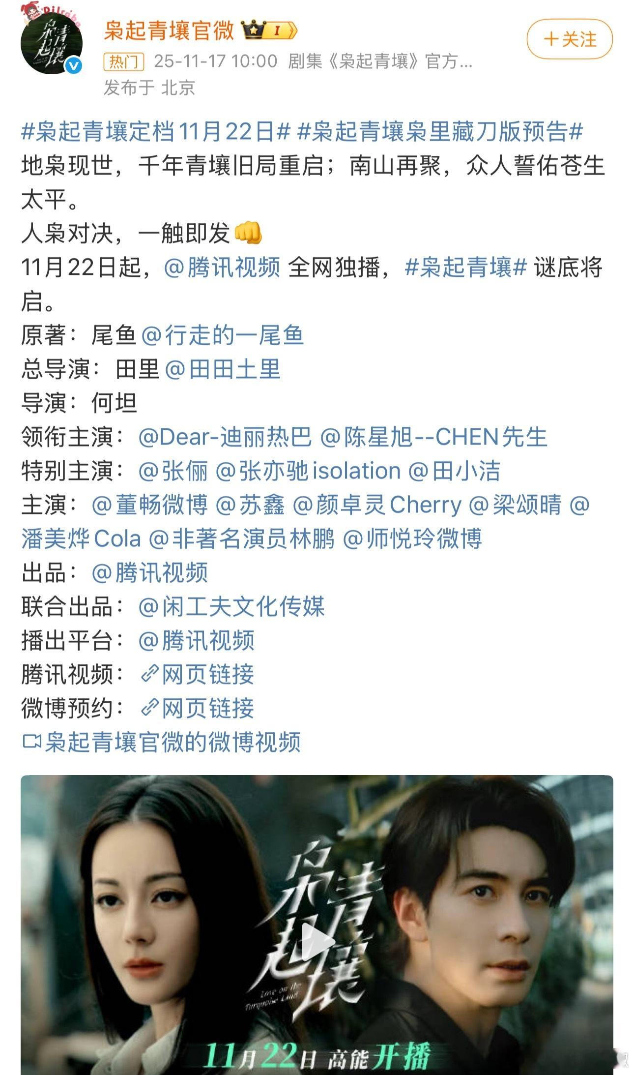 迪丽热巴、陈星旭《枭起青壤》定档11.22播出,能不能成为🐧年底kpi的救命稻草?就看这剧表现了