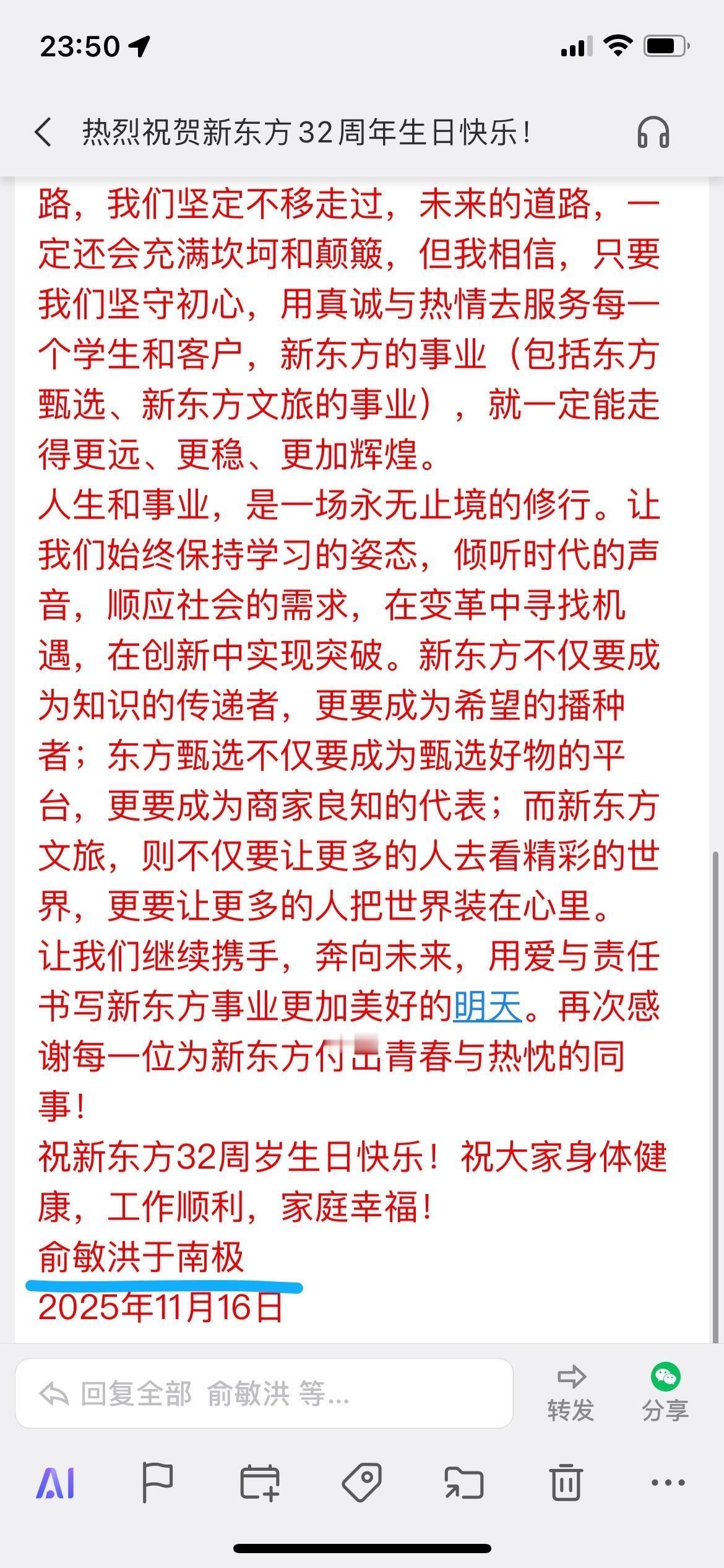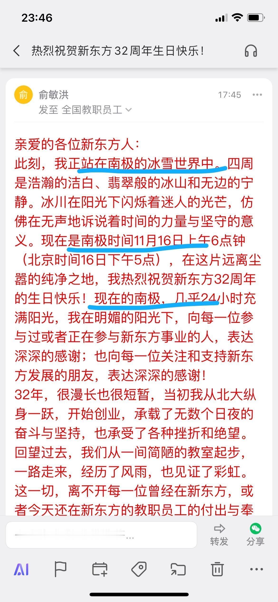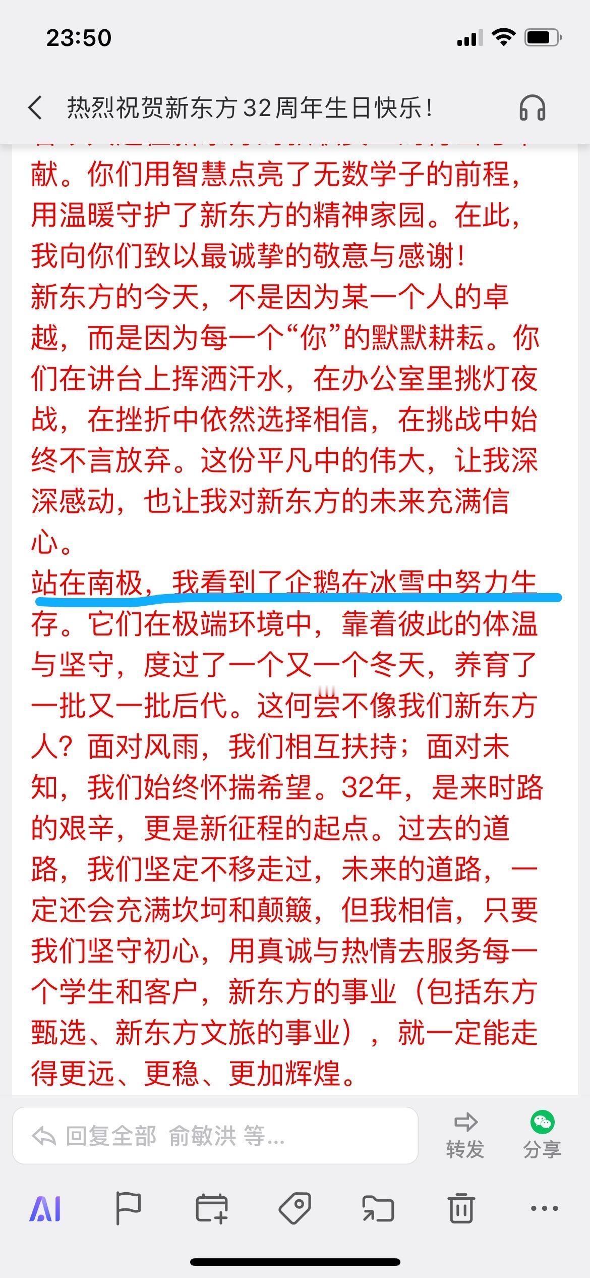 俞敏洪的南极贺信是给明年员工的新东方“吐槽之歌”贡献素材呢吗