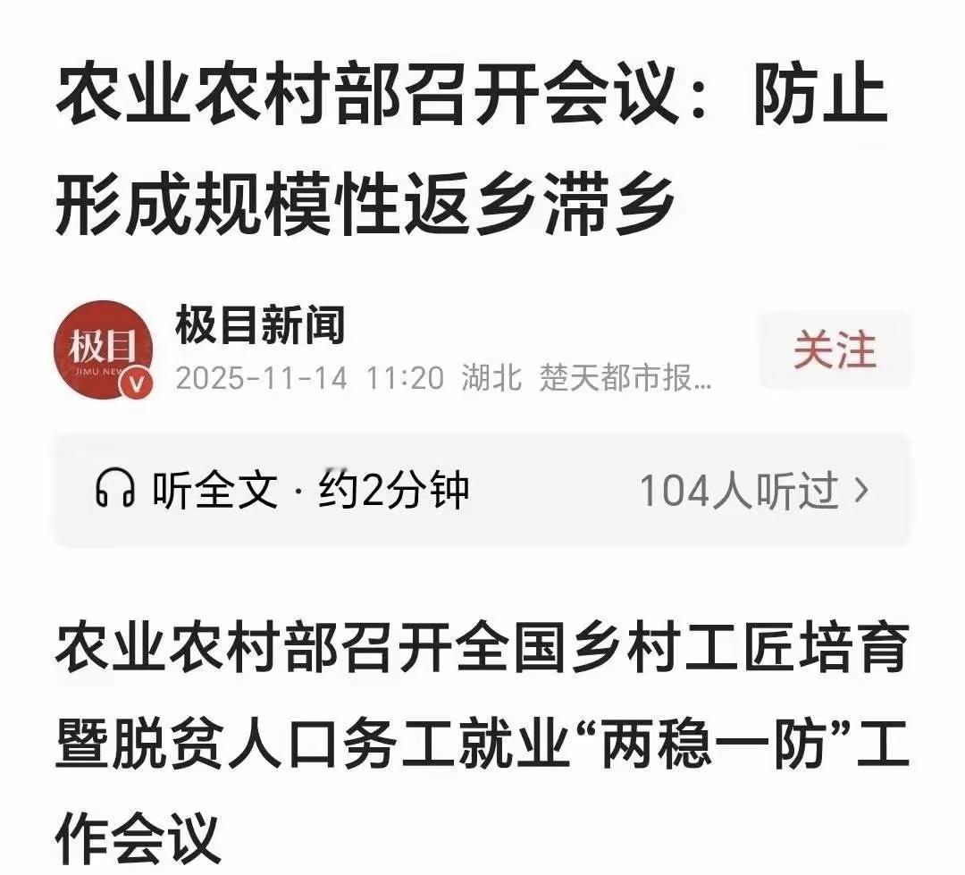 农村农业部召开会议:防止规模性返乡滞乡。 其实核心就是怕外出打工的脱贫户们要是集中返乡,又没活儿干、没收入,最后日子再变困难。 这事儿说白了就是防患于未然。现在经济形势摆在这儿,工地活少工厂单子薄,要是打工的都扎堆回老家,那可真要出乱子。农村那点地哪养得活这么多人?种一年玉米还不如城里搬一个月砖挣得多。 我二叔家小子在东莞电子厂,去年过年回来就说流水线时开时停。现在村里像他这样的后生不少,都是咬着牙在城里硬撑。真要大规模返乡,第一个炸锅的就是农村信用社——取钱的人能排到村口大槐树底下。 上面这担心不是没道理。脱贫户最怕返贫,好不容易摘了帽子,不能再戴回去。但现在城里就业岗位就像梅雨天的干柴,看着一堆就是点不着火。建筑行业不景气,制造业外流,送外卖都比以前难抢单。这些打工仔都是农村的顶梁柱,他们要是在城里混不下去,一大家子都得喝西北风。 其实最遭罪的是那些刚脱贫的老人。儿子媳妇要是从城里回来啃老,那点养老金还不够买降压药的。我们村东头老王家就这样,儿子在浙江失业回来,现在爷俩天天蹲门口抽闷烟。 要我说啊,光防着不行,得给农村找新出路。现在搞乡村振兴不能光刷墙修路,得让农村真能挣着钱。比如我们县去年搞的冷链仓库就挺好,种的水果能存住价了。再多引进几个农产品加工厂,让返乡的人有地方干活。 关键是得未雨绸缪。等打工的真成批回来了再想办法,那可就晚喽。现在趁着人还在城里,赶紧把农村的产业搞起来,这样就算有人回来,也不至于闲着打麻将。 各位读者你们怎么看?欢迎在评论区讨论。心情不好的时候,你们最想干什么呢 农村人返乡 城市返乡潮 返乡现象 返乡人员 农村人口下降 返乡模式