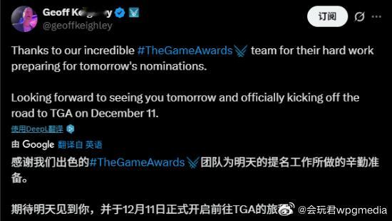 TGA提名明日凌晨公布:6款游戏争夺年度最佳TGA主持人Geoff Keighley今日发布动态,感谢团队为提名工作所做的辛勤准备。提名名单将于明日公布,TGA将于12月12日上午9点正式开始颁奖(北京时间),根据往届经验,会从8点半开始播片。据悉,今年TGA的提名名单将于11月18日凌晨1点(北京时间)公布!届时将进行直播,公布所有提名游戏。有6款游戏将获得年度游戏提名,你认为是哪6款游戏能争夺年度最佳的荣誉呢?
