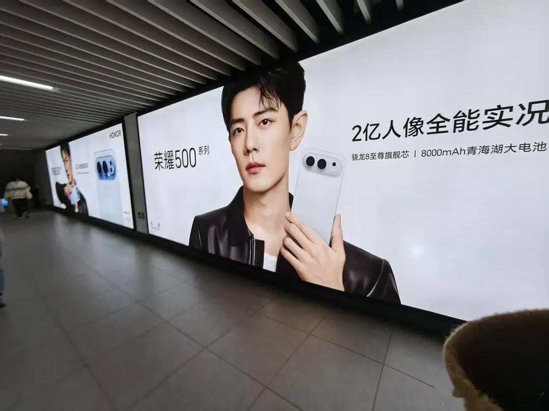 品牌宠代言人全世界都能看到!荣耀手机真的超级舍得铺地广,100米长的直接给肖战铺了4个一线城市