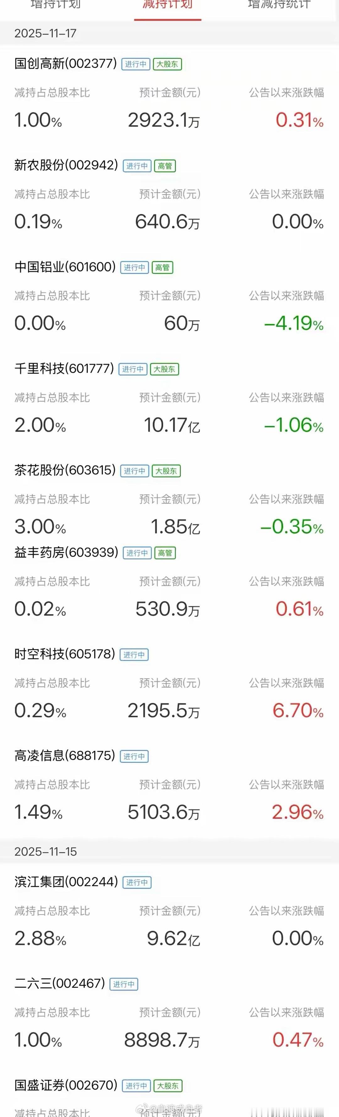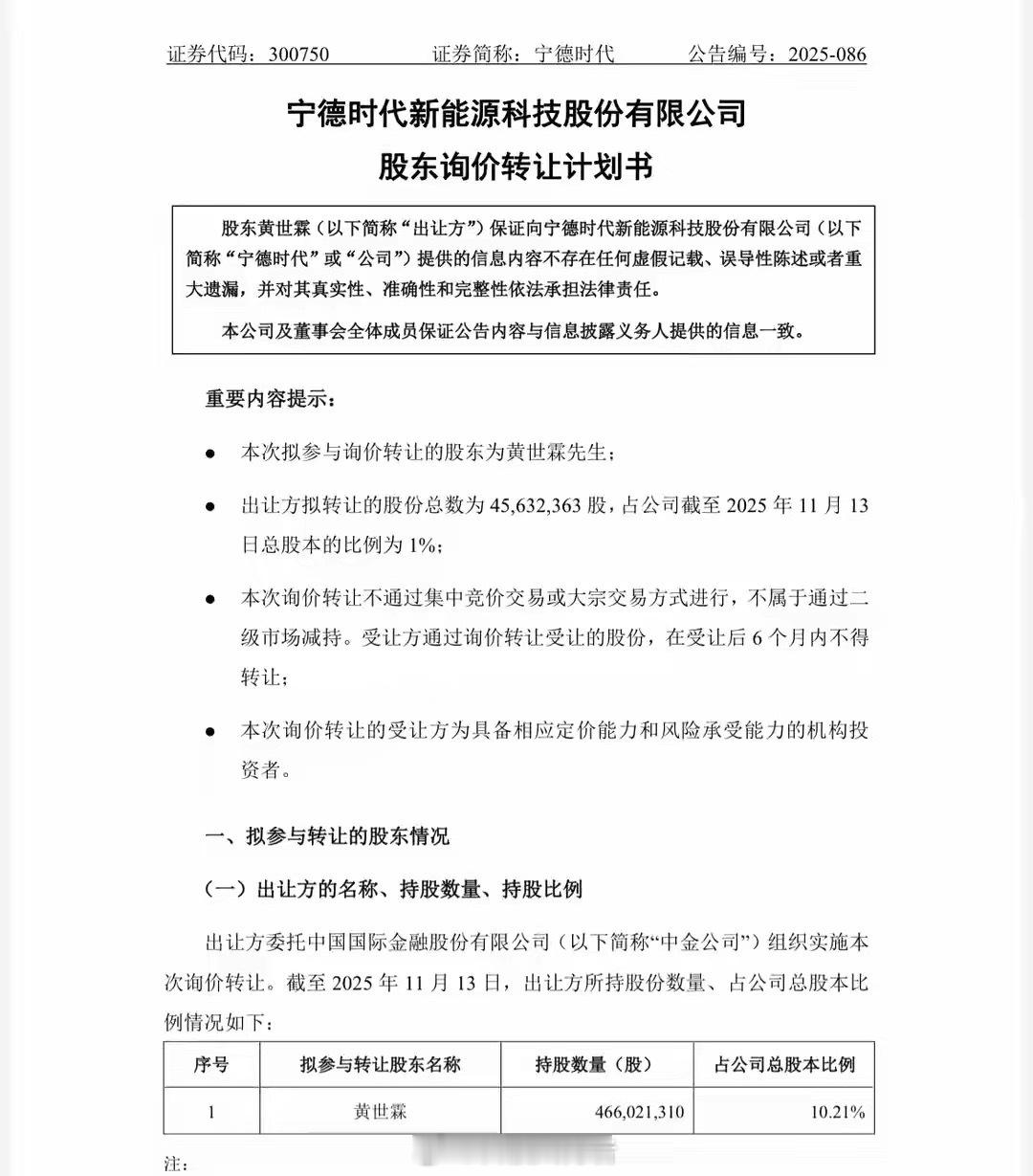 A股避雷预警:1家实控人被立案+12家减持公告,1股拟减持6%!这些高位股风险拉满A股又现密集风险信号!昨晚1家公司实控人被立案调查并留置,12家公司集中披露减持公告,其中1股拟减持比例达6%,叠加上周4家立案、27家减持的背景,多只高位股需警惕回调风险。一、立案调查警示:高位股突遭“黑天鹅”• 迈赫股份:实控人、控股股东被立案调查并留置。作为自动化设备+机器人概念标的,公司2021年12月上市,年内股价已暴涨245%,当前处于阶段性高位。截至最新,公司股东数1.368万户(环比增长1.73%),不少投资者在股价上行中追入;尽管业绩小幅增长(2024年净利润8613万元,2025年三季报9842万元),但立案调查或对股价造成冲击,股东需密切关注后续进展。• 回顾上周:ST长药、八一钢铁因信息披露违法违规立案,前者两跌停后企稳,后者跌停后再跌两天;洲际油气(违规增减持)、上海洗霸(短线交易)立案后,股价也受明显影响。二、减持潮来袭:12家公司扎堆披露,多只高位股在列昨晚12家公司发布减持公告,涉及宁德时代、和顺石油等热门标的,部分个股减持比例高、股价累计涨幅惊人:1. 宁德时代:股东拟通过询价转让减持4563.24万股(占总股本1%),最低折价70%,按当前1.84万亿市值计算,预计减持金额高达184.14亿元,为近年规模最大减持之一。公司年内股价从128元涨至404.12元,区间涨幅235%,股东借股价新高减持,公告称系公司发展资金需求。2. 和顺石油:实控人及一致行动人拟协议转让减持6%股份。作为石油加工贸易企业,公司上一交易日刚涨停,年内涨幅168%、近两月涨85%,但业绩持续下滑(2024年净利润2927万元同比降43.97%,2025年三季报降49.51%),当前市值48.19亿,预计减持金额2.89亿元。3. 千里科技:股东拟通过大宗交易减持2%股份(9042.2万股),预计减持金额10.17亿元。公司为汽车整车标的,年内股价从2.4元涨至11.25元,区间涨幅486%,当前市值508.62亿元,尽管业绩盈利(三季报净利润5328万元),但953倍的高市盈率需警惕估值回调。4. 茶花股份:股东拟合计减持3%股份(724.46万股),预计减持金额1.85亿元。作为家居用品企业,公司年内股价上涨210%并创新高,近期高点29.68元较前几年6元低点涨幅近4倍,但业绩表现分化(2024年亏损3760万元,2025年三季报盈利588万元),高位减持或引发抛压。5. 其他减持标的:天孚通信(减持1.09%,金额13.17亿)、国盛证券(减持2.82%,金额10.01亿)、康龙化成(减持1.50%,金额8.4亿),以及国创新高、新农股份、中国铝业、益丰药房等。以上数据为客观统计,不构成任何投资建议。股市有风险,投资需谨慎!