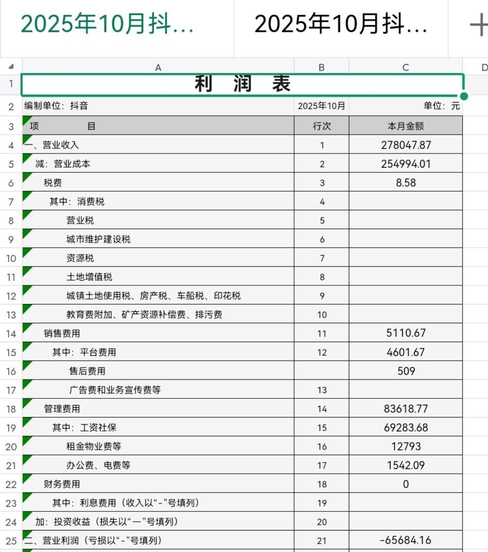 好像这抖音也没做下去的必要了,亏了大半年钱了这个月甚至直接亏了快七万好处是量小免税,坏处是压根没利润