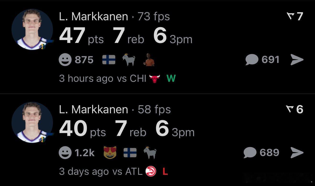 火力全开🔥马尔卡宁近3场比赛表现:对阵步行者,35分3板2助,19中13;对阵老鹰,40分7板2助,25中15;对阵公牛,47分7板2助,33中15。后天中午11点半,湖人主场将迎战爵士