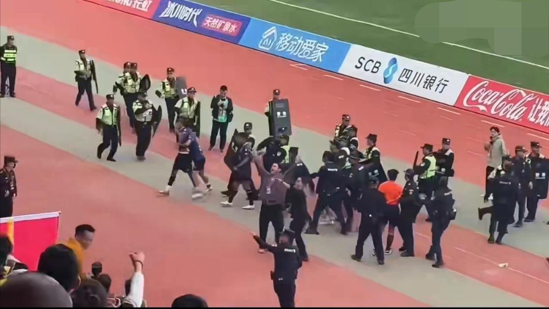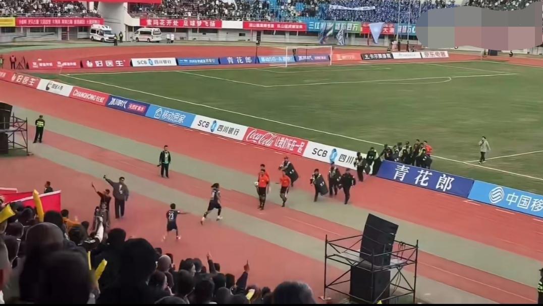 凉山主场迎战乐山的这场比赛,赛事主办方好像赛前就知道场上球员或者场下球迷可能会有过激的行为发生一样,事先就安排了这么多安保人员布置在球员通道两边。还有几位裁判下场的时候后面也是跟了很多安保人员…… 可千算万算,还是没有算到这位88号球员在场上骂裁判还不解气,裁判下场了又出其不意的飞起一脚。[捂脸][捂脸][捂脸] 年轻人还是太容易冲动啊!这么一场无关双方出线与否的比赛,却整出这么一个幺儿子出来。