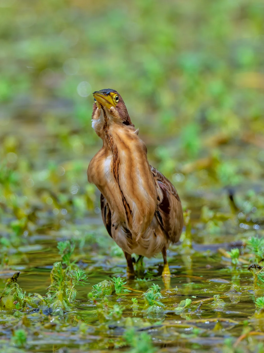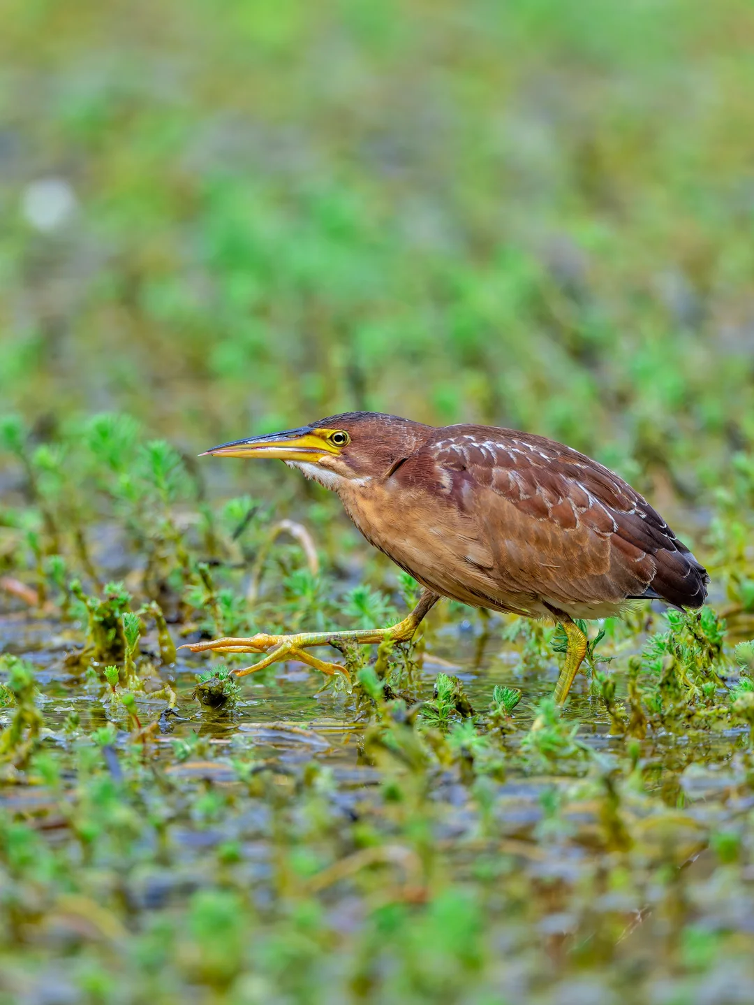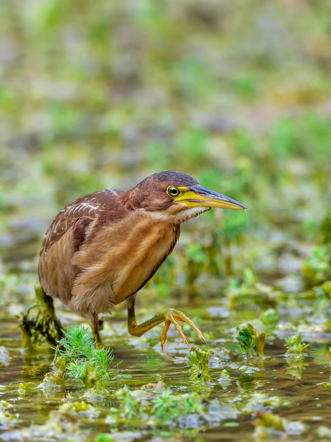原创拍摄于2025.11 紫背苇鳽,Von Schrenck's Bittern,鹈形目鹭科苇鳽属。这种漂亮小巧可爱的涩禽,是在西伯利亚和我国东北繁殖,冬天会迁徙到东南亚。 紫背苇鳽头顶黑褐,背是栗褐,略略显得有点紫,有中央喉线,雌鸟跟雄鸟相比更暗淡,背密布白色小点。 现在正是紫背苇鳽迁徙过境大湾区的时候,去年也是这个时候有一只到了深圳大学,但是那只翅膀受伤,不知道后来去向如何。今年在华南师大的这一只看上去非常的大方,一去就接见所有鸟友,自信觅食,不到半小时就捕获多只虾和一条大鱼,真是厉害!