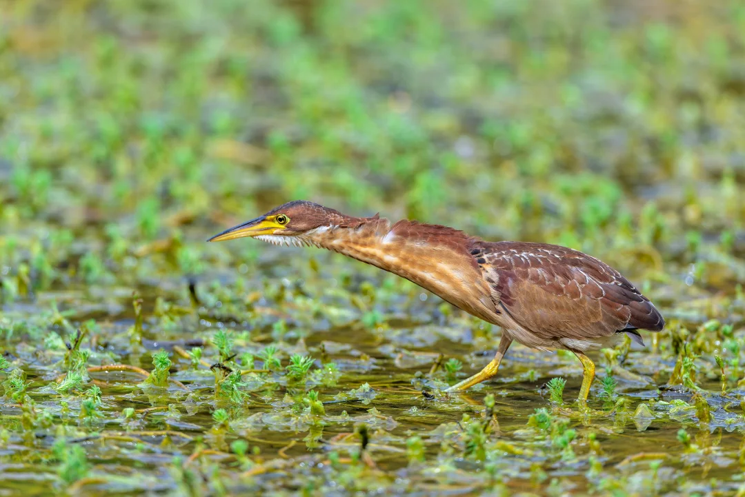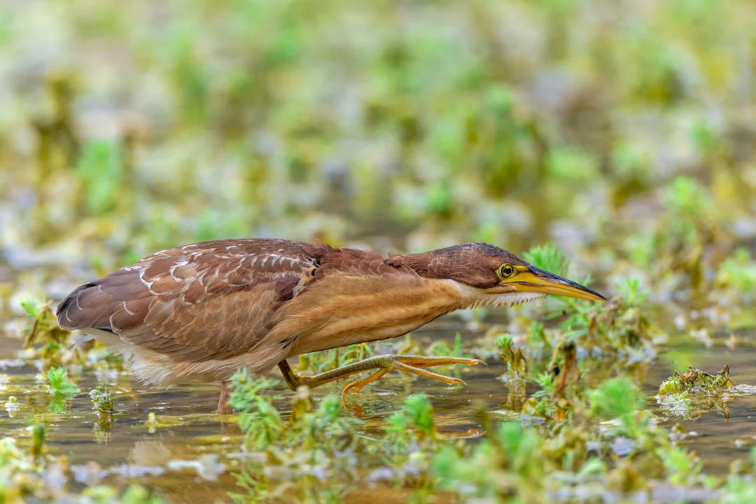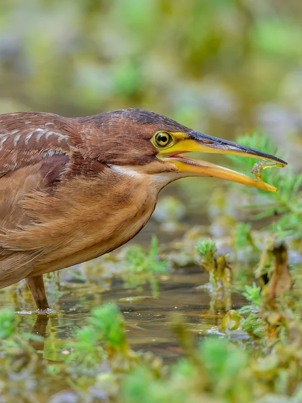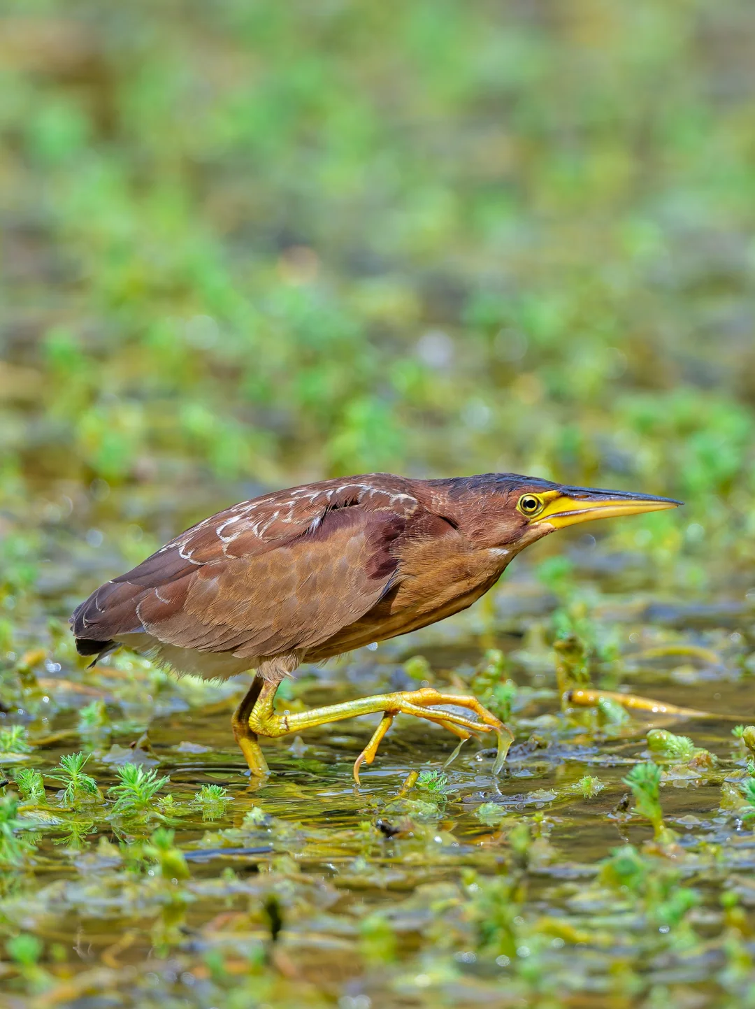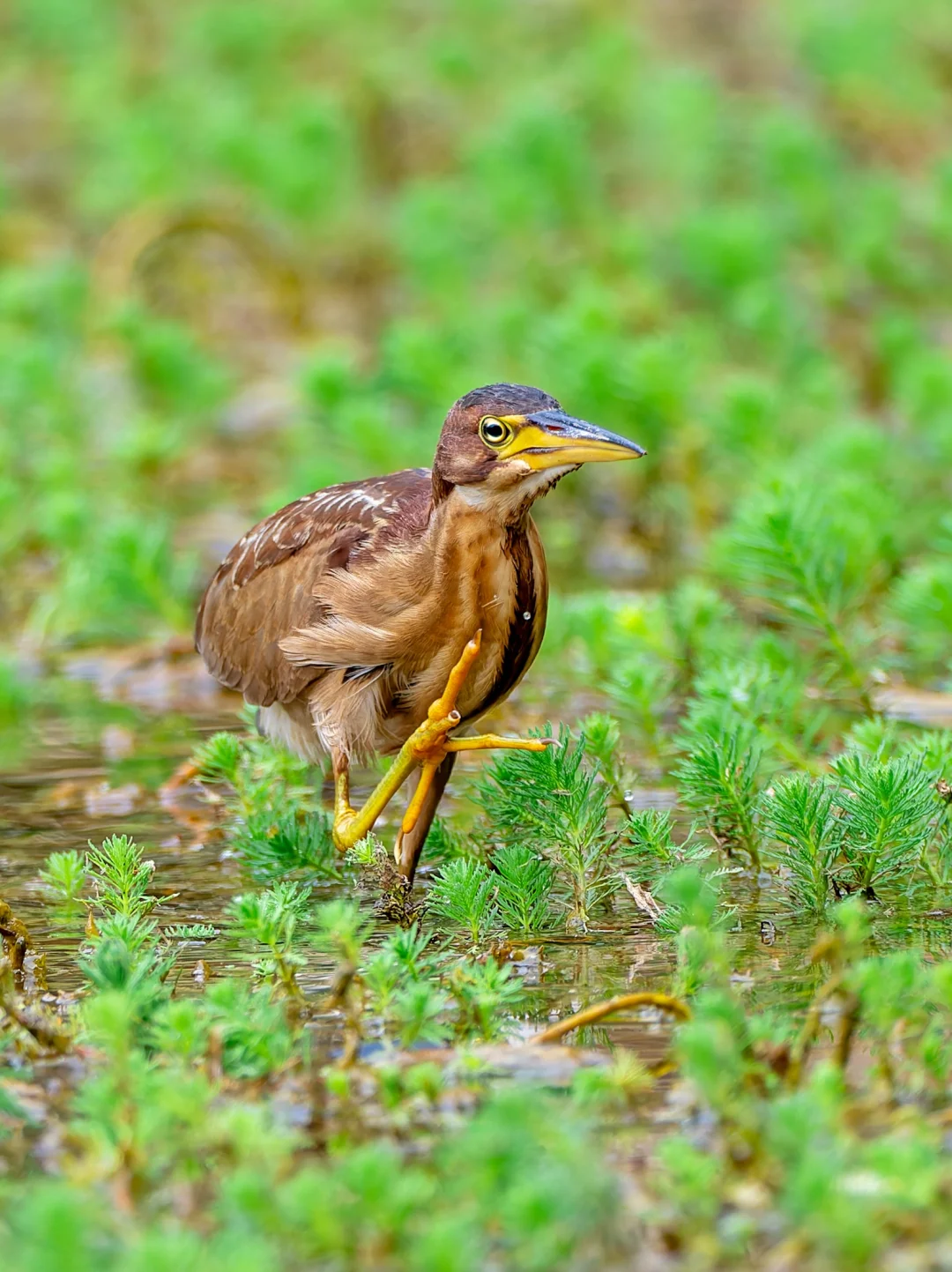 原创拍摄于2025.11 紫背苇鳽,Von Schrenck's Bittern,鹈形目鹭科苇鳽属。这种漂亮小巧可爱的涩禽,是在西伯利亚和我国东北繁殖,冬天会迁徙到东南亚。 紫背苇鳽头顶黑褐,背是栗褐,略略显得有点紫,有中央喉线,雌鸟跟雄鸟相比更暗淡,背密布白色小点。 现在正是紫背苇鳽迁徙过境大湾区的时候,去年也是这个时候有一只到了深圳大学,但是那只翅膀受伤,不知道后来去向如何。今年在华南师大的这一只看上去非常的大方,一去就接见所有鸟友,自信觅食,不到半小时就捕获多只虾和一条大鱼,真是厉害!