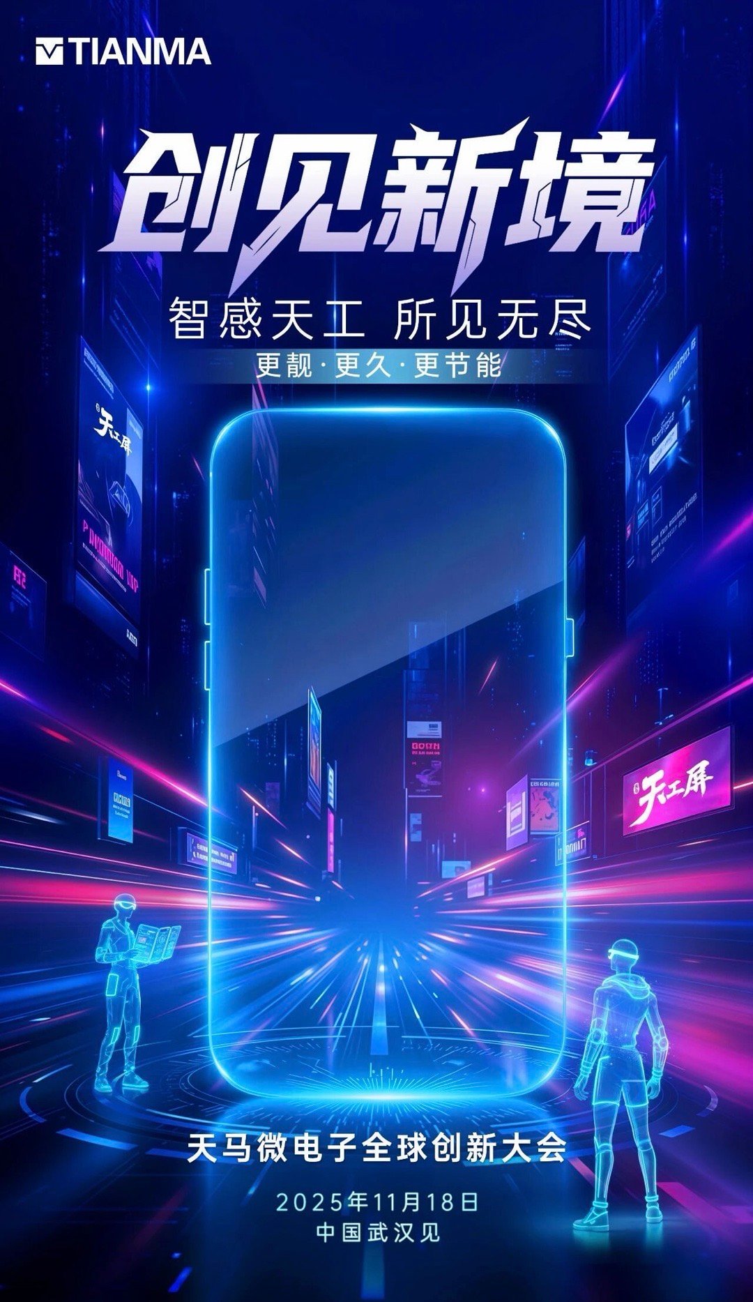 天马又有新活端上来,天马微电子将在武汉举行带来十一项全球首发技术。全球首款全激光巨转 TFT基108" 4K Micro-LED 巨幕屏全球首款三合一光感「天工」屏RIS HUD光影全景视窗「天轩」屏「天轩」全球首发真610Hz无极电竞屏手机、车载、IT、Micro-LED多领域技术齐发明天发布会,真的巨多
