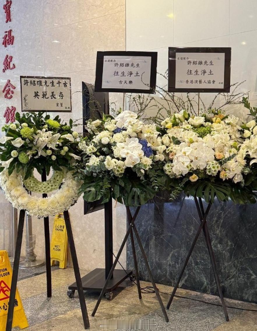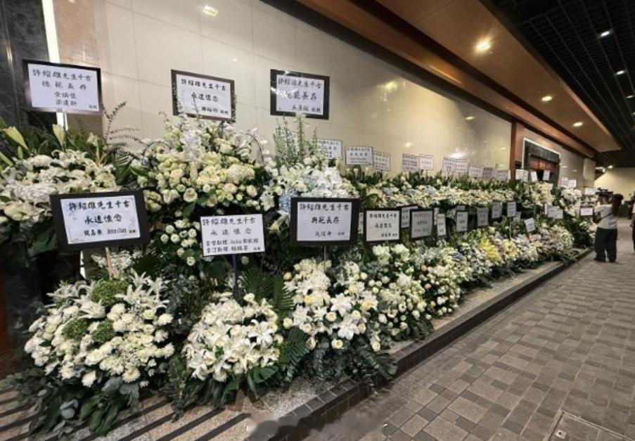 17日下午,香港著名演员、港剧“金牌绿叶”许绍雄追悼会在假大围宝福纪念馆举行。摆放中间,灵堂外放满不少圈中好友致送的花牌,包括宣萱、古天乐、吴彦祖、郑裕玲、陈山聪、林峰、成龙、钱嘉乐、陈展鹏夫妇、车婉婉、香港演艺人协会、余安安、关菊英、姜皓文夫妇、周励淇、苑琼丹、苏永康、陈浚霆、袁洁莹、林小明、江嘉敏、区永权、胡杏儿及李丽霞等亦送上花牌悼念,形成一片花海。