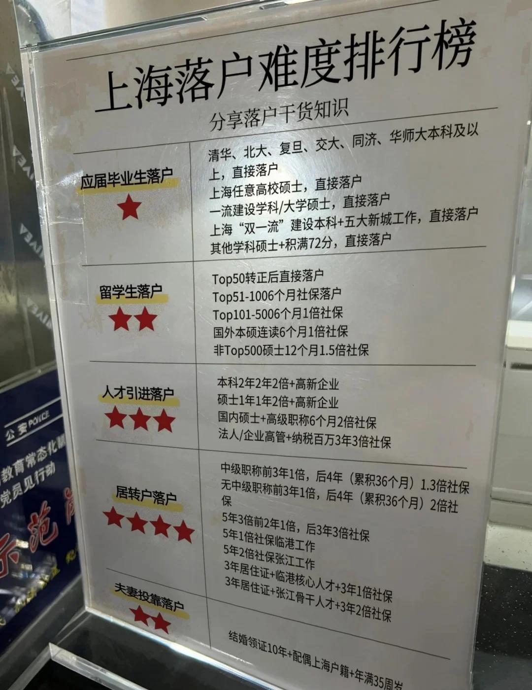 2025沪口“登塔”难度表|条能躺赢? 🗒️ 2025沪口“登塔”难度表|哪条路最卷?哪条能躺赢?一张图看懂👇 ——— 应届生赛道 ——— 难度:🌕⚡️(几乎白送) 1️⃣ 本地硕博+外地双一流本科:研三拍完毕业照,顺手领户口本📑 2️⃣ 复交同华本科:校长在毕业典礼上暗戳戳塞给你“310”号码牌🏷️ 3️⃣ 其他高校小伙伴:拼附加题!英语六级、省奖、创业执照…凑够72分依旧能“上岸”🧩 💡 彩蛋:去五大新城/南北转型核心上班,双一流本科也能当场“免单”,记得让HR把落户权限开光💼 ——— 海归专区 ——— 难度:🌕🌑(有手就行) Top50:飞机落地,行李还没拆,户口预约号已排到下周📆 Top100:半年社保打卡,基数随意,奶茶钱别断就行 100+:专业得紧俏(芯片⛓️、AI🤖、生药💊),1.5倍社保熬一年,就当“沪漂”变“沪票” ——— 人才绿色通道 ——— 难度:🌕🌕🌑(公司给力就稳) 芯片/AI/生药打工人: 本科➕2年工龄➕2倍社保,流水够就OK👌 硕士➕重点机构➕1年2倍社保,光速通关⚡ 高管大佬:公司三年纳税百万+自己3倍社保,直接“氪金”通关💰 ——— 居转户“长跑” ——— 难度:🌕🌕🌕🌕(钱包+耐心双重考验) 常规路线:7年居住证+中级职称,前四年低调1倍,后三年升到1.5倍,慢火炖自己🍲 无职称党:后四年必须2倍基数,月薪2.3w起跳,每月看着工资条心疼三秒💸 ——— 家属“蹭车” ——— 难度:🌕🌑(真爱能抵岁月) 标准答案:结婚10年+35周岁,民政局+派出所两头跑,稳稳拿号🎫 加速外挂: 少数民族/归侨→7年💒 残障配偶→5年♿ 一句话:人选对了,户口提前到货! ——— 一句话总结 ——— 想无痛落沪:要么书读得够靓,要么公司够硬核,要么爱情够长跑; 都不沾?那就努力搬砖+攒钱,把社保基数刷到亮眼,也能把“沪”字纹进身份证🆔 冲吧,祝大家早日成为“310”开头的朋友!🎉 落户上海 上海人才引进落户 上海落户 上海留学生落户 留学生落户上海 居转户 人才引进 上海落户难度排行榜