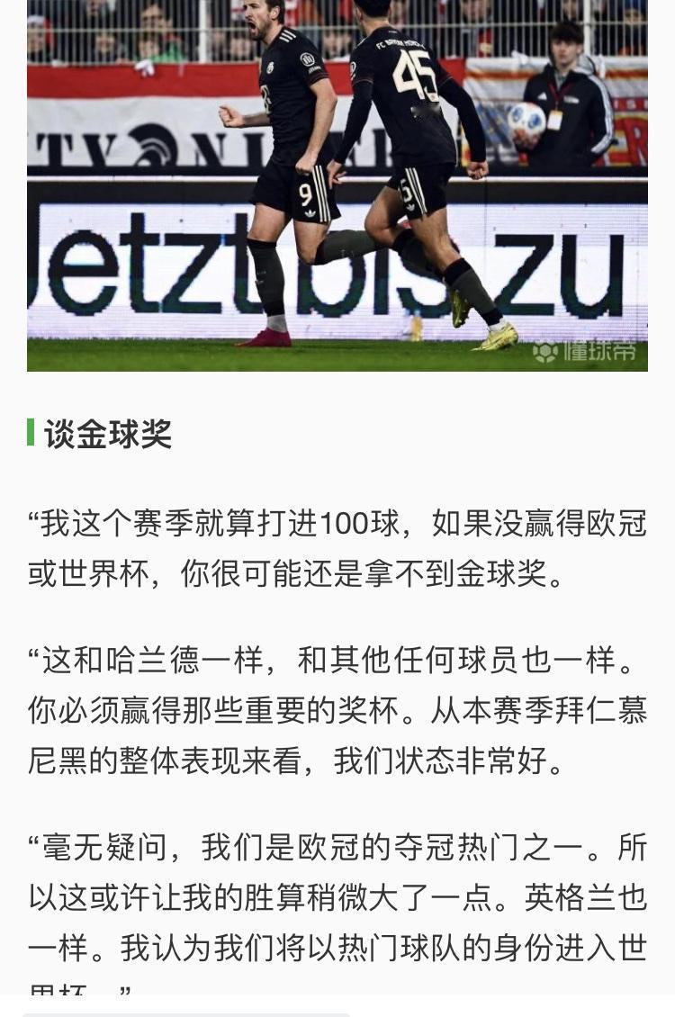 凯恩说的对,没有大赛冠军,哪有金球奖? 但他没看到嘛,梅西和C罗有时没有冠军,只要数据豪华,依旧有金球奖希望。 所以数据好,再加上荣誉更有希望。 明年他保底有德甲冠军,冲击欧冠冠军,争取世界杯冠军,凯恩是金球奖热门![得意]