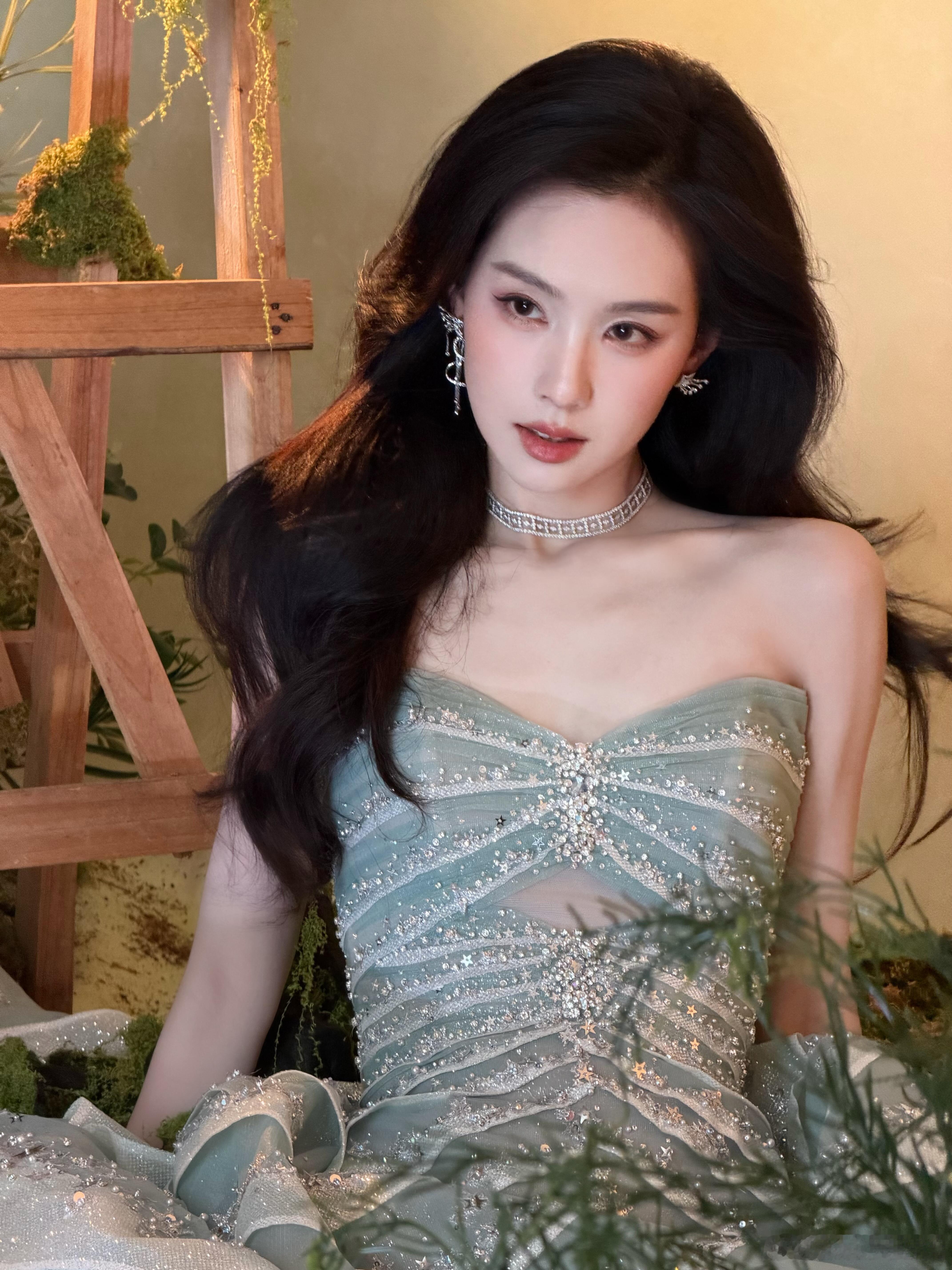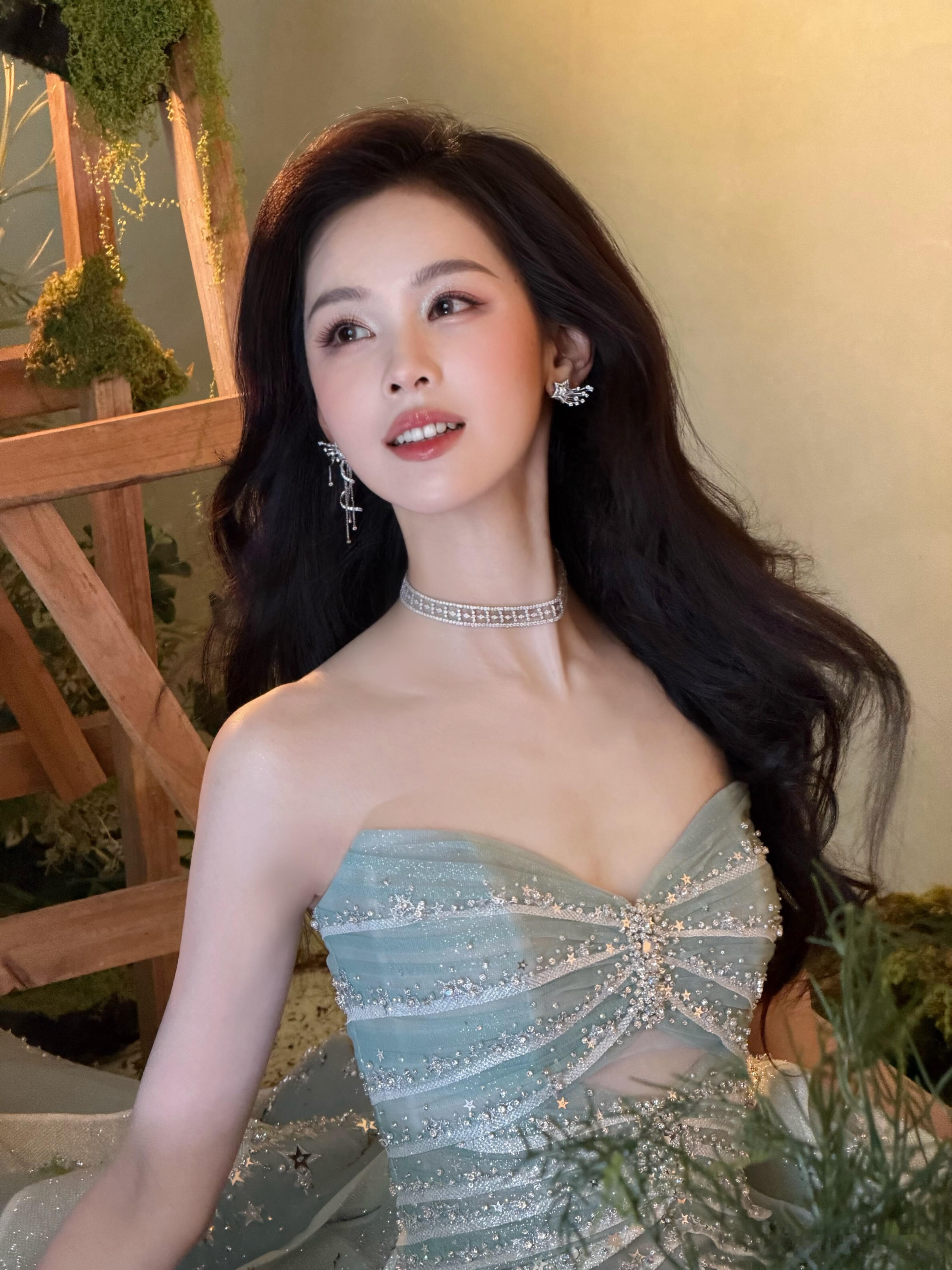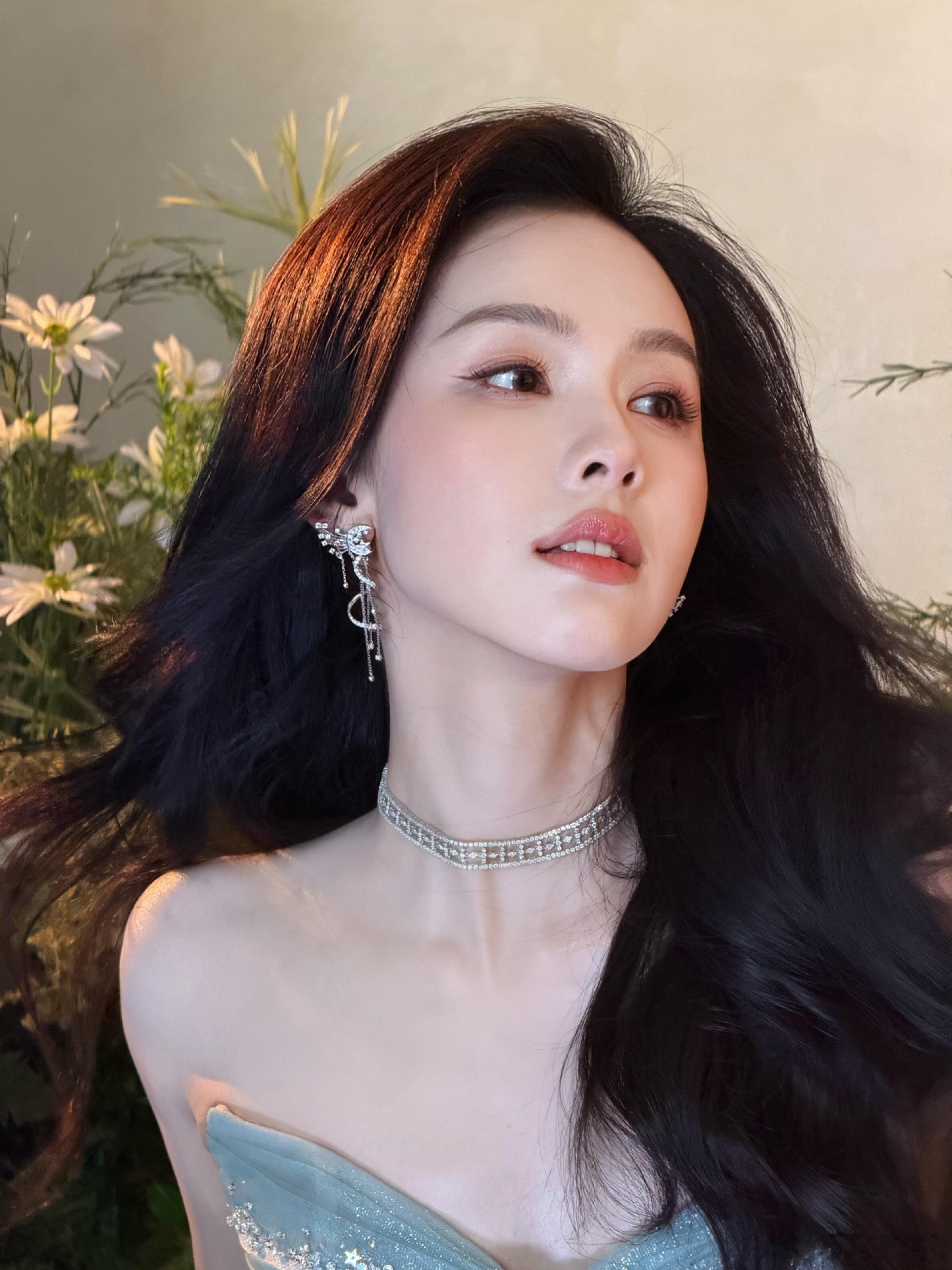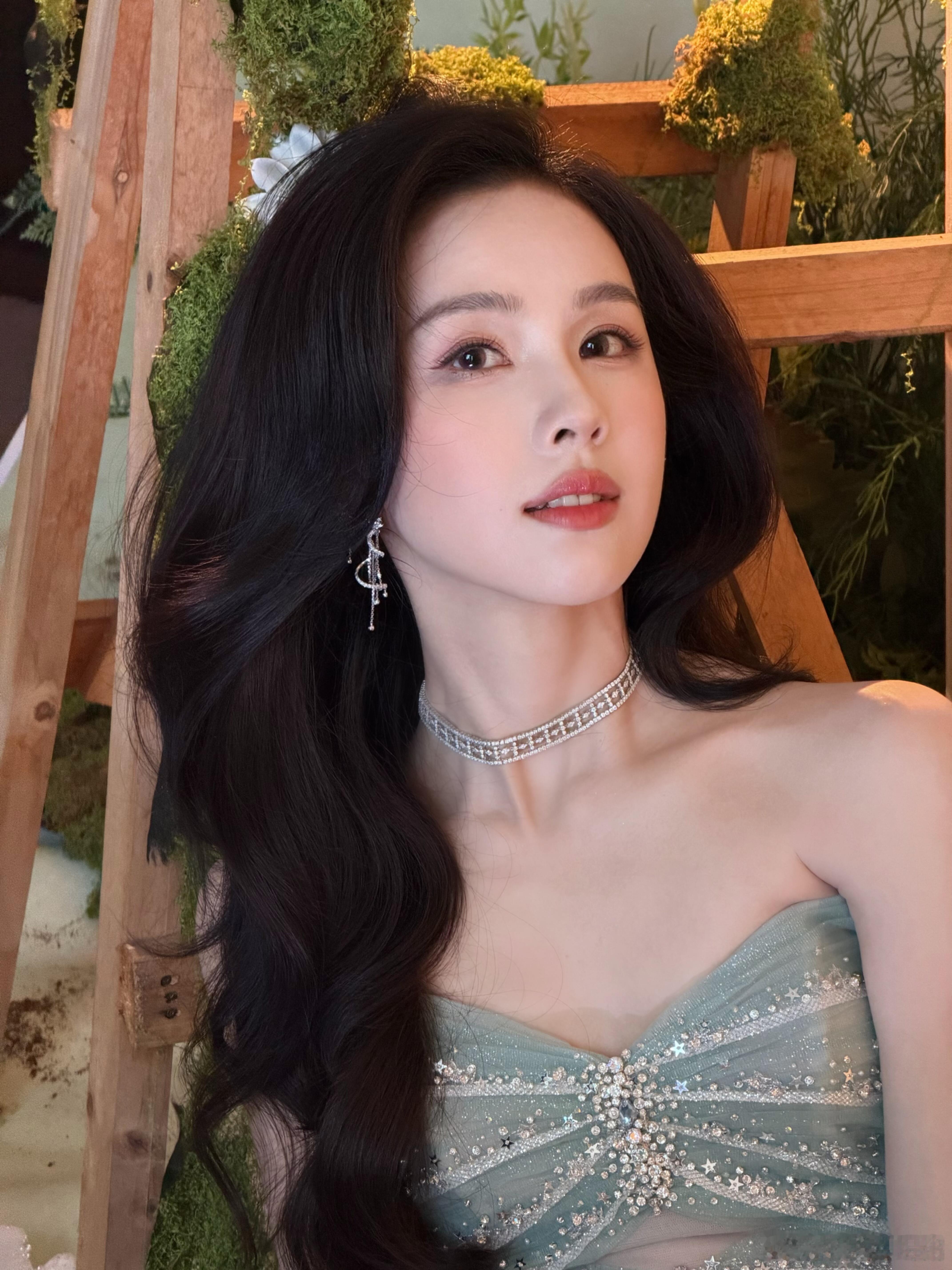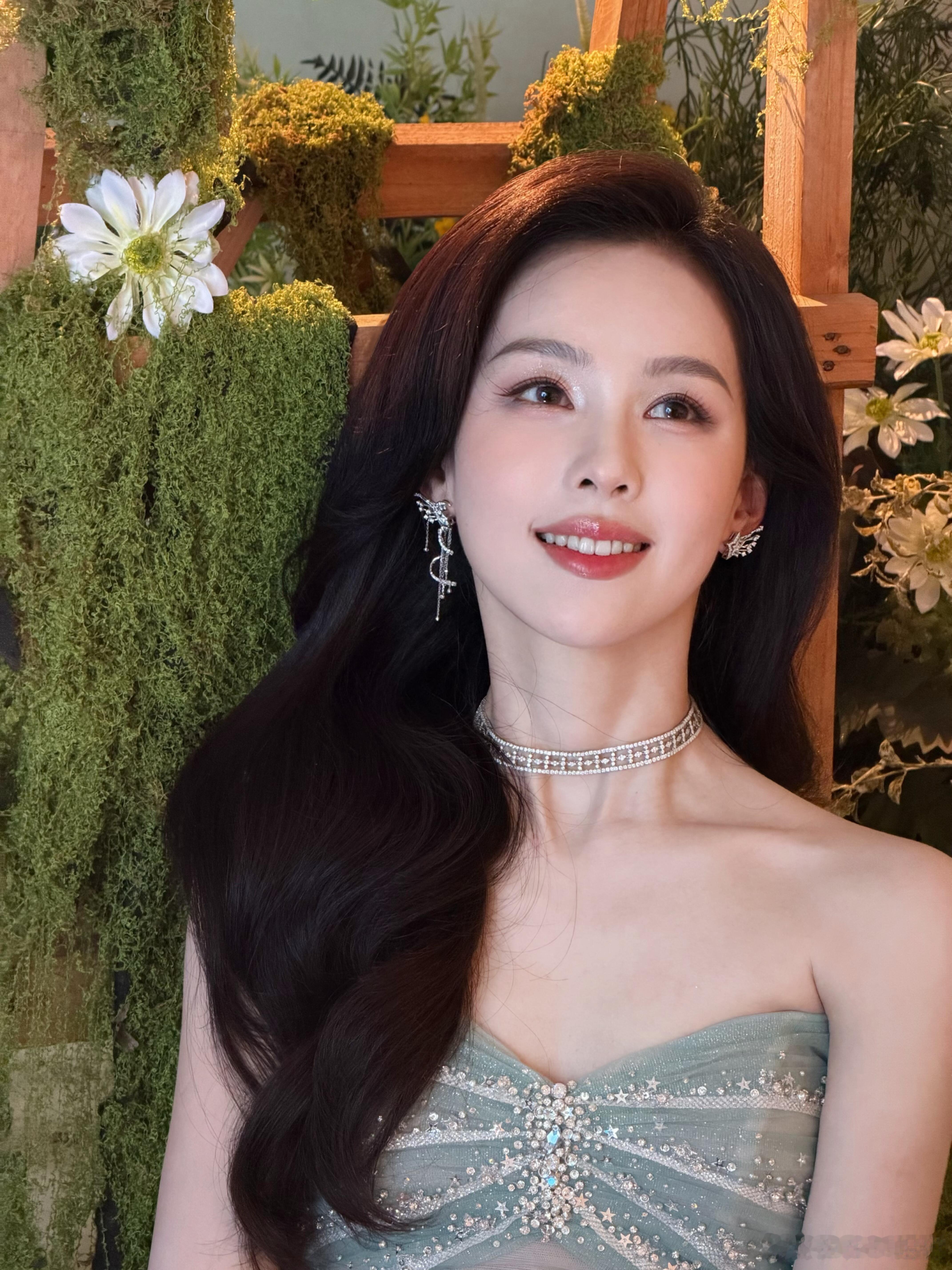 陈都灵这一笑,是把“温柔本身”具象化了吧🌿黑长卷衬得肩颈软而清,耳坠的碎钻像落进笑意里的星;淡蓝裙角蹭着绿意,连唇色都甜得刚好——这哪是生图,明明是把“舒展又明媚”揉成了真人版。